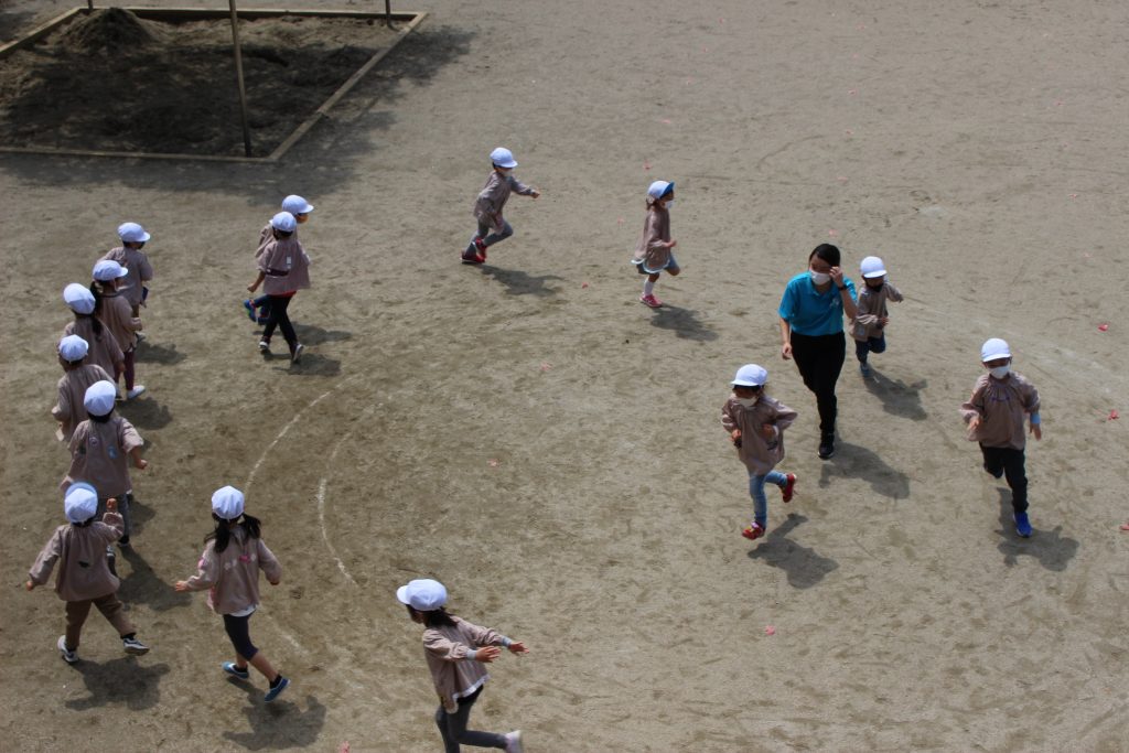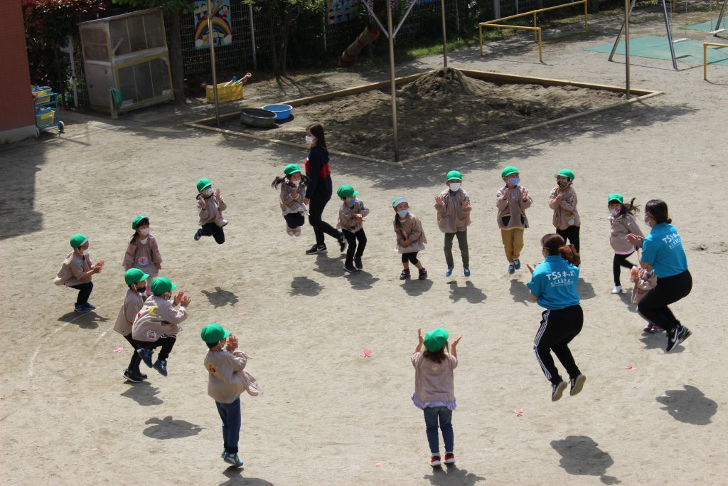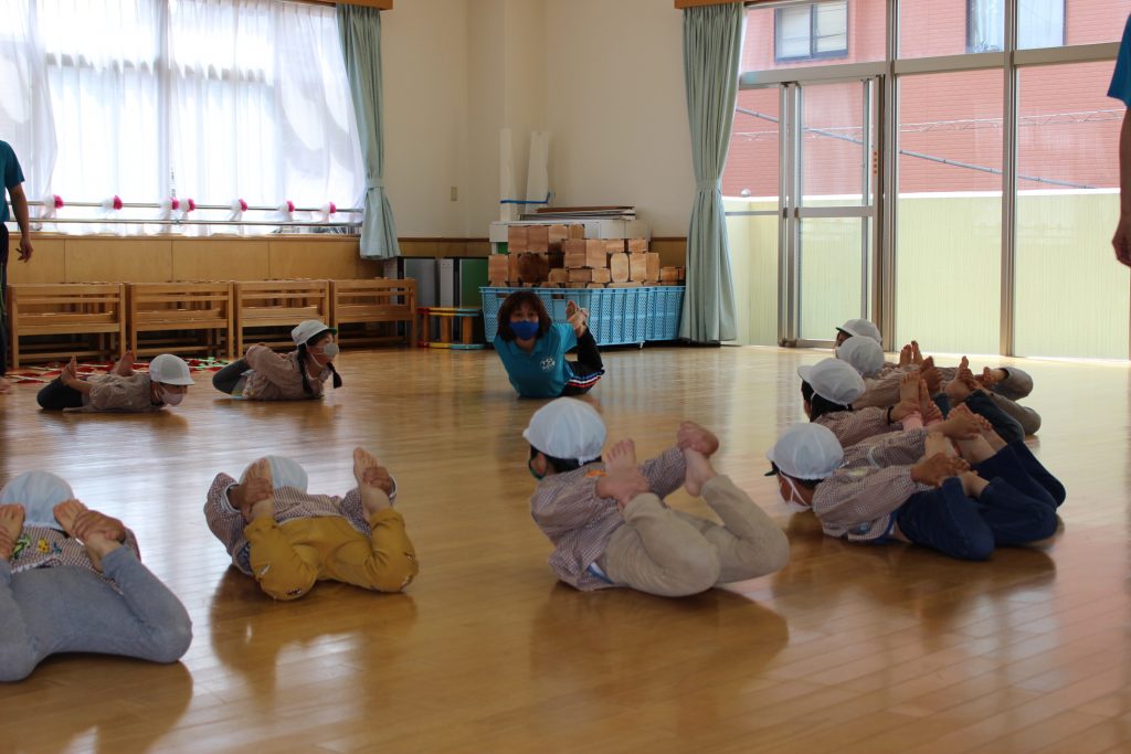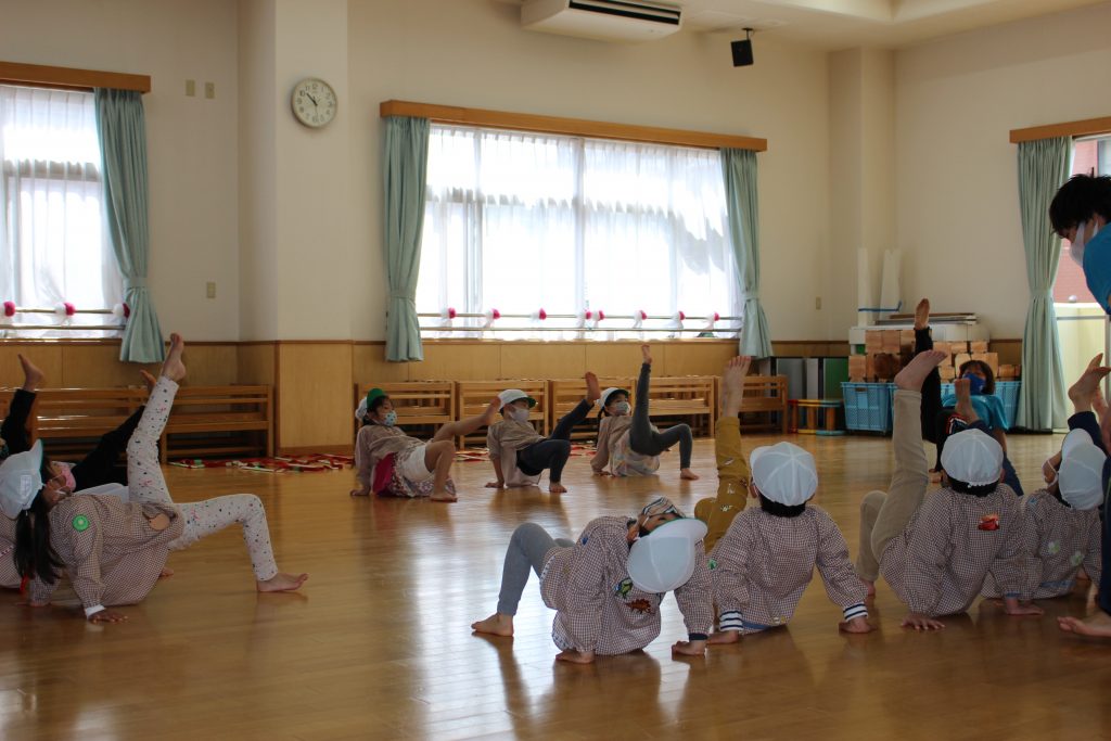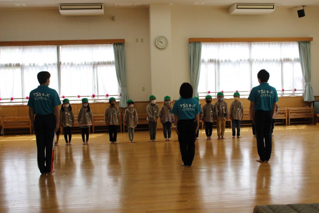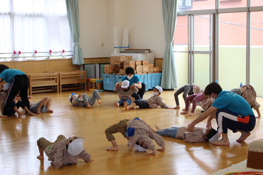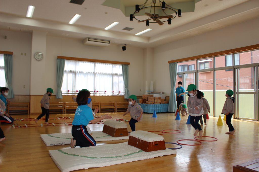 初回の先陣を切ったのは年長組。初めて出会うコーチの話を真剣に聞き、様々な動きを教わながら活き活きと意欲的に取り組む姿が見られていました。