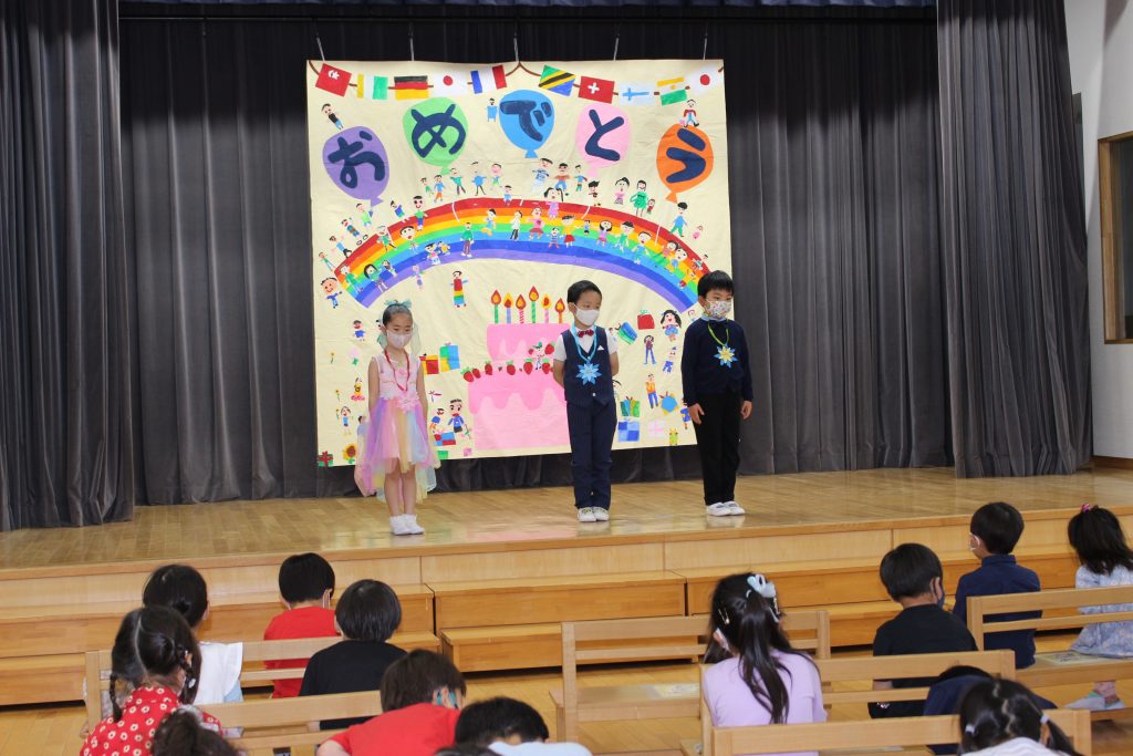 そのような中、5月の誕生会が行われ、どの学年も4月の時の緊張が和らいだような雰囲気を感じ、新しいクラスや学年に慣れてきたのだなと誕生会を通して感じました。