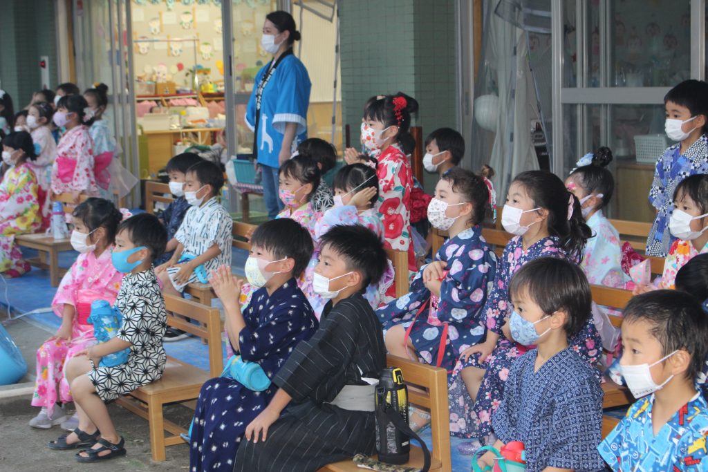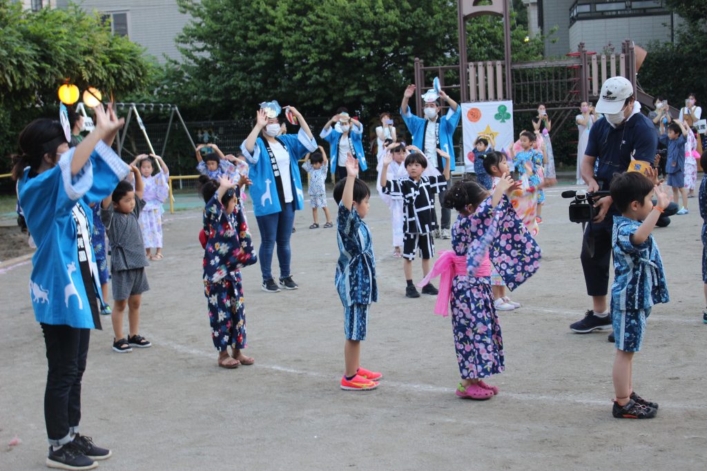 昨年はコロナウィルスの感染状況などにより、夕涼み会は実施できませんでした。今年は学年別で、暑さのある時間帯に実施した学年もありましたが、一人ひとりにとって夏の特別な体験となり、心の中に何かが残ってくれていたら嬉しく思います。最後になりますが、各学年の盆踊りで太鼓を叩いてくださった保護者の皆様、東京音頭を踊ってくださった年長組の保護者の皆様、そして、例年とは異なる実施に多くのご理解とご協力いただきました全ての皆様に感謝申し上げます。