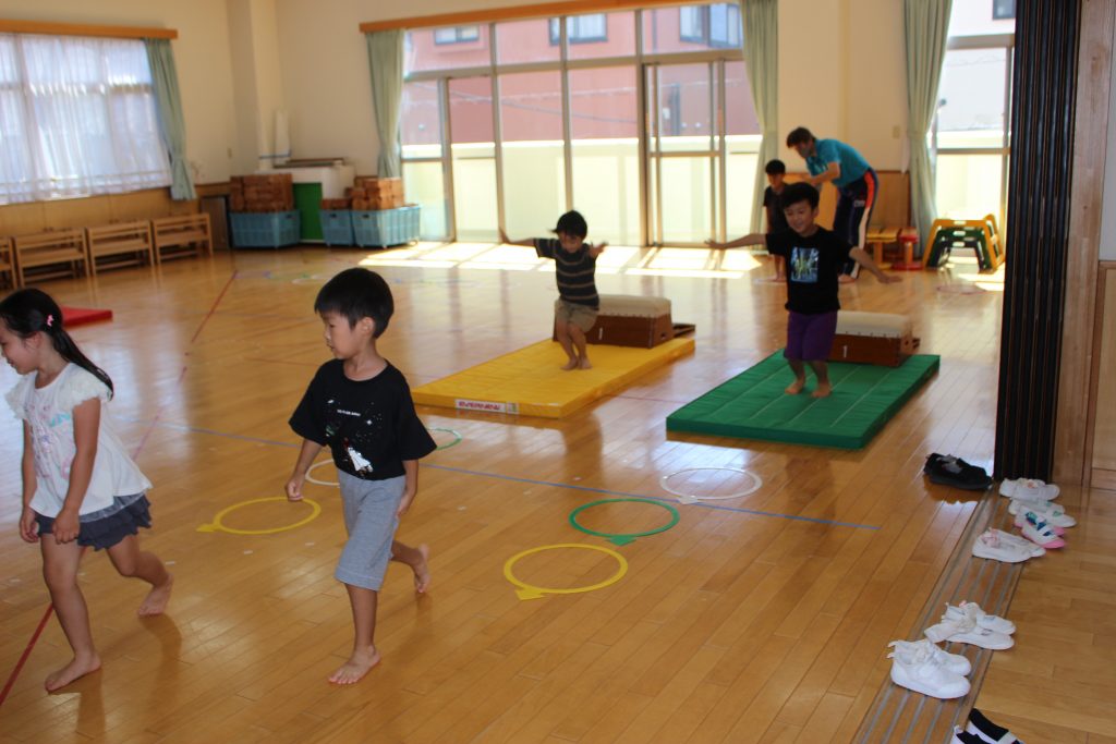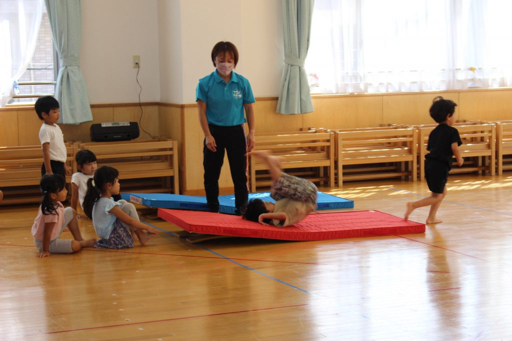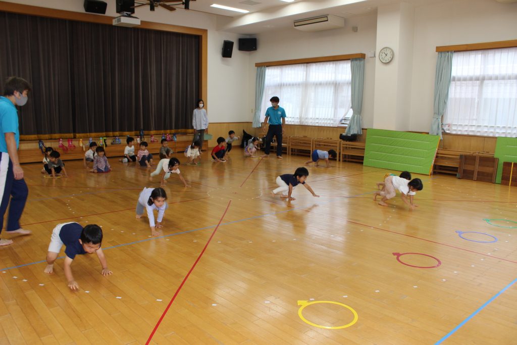 運動教室の再スタート 2021 10/07 2021.10.07 教頭発【令和3年10月7日木曜】曇り 新型コロナウイルスの感染者急増や子どもへの感染数の増加もあり、9月いっぱいお休みをしていた正課運動教室。10月は、感染状況が変わってきたので、再開することに決めました。今週は、年少・年中組の子ども達が久しぶりに行いました。1学期までに経験した動作を取り組む中、活き活きとした表情が多く見られていました。どちらの学年もそれぞれに初めての動きがあり、側転や補助倒立、後ろ向きのクマ歩きなどコーチの話を聞きながら挑戦していました。 秋の薫り いよいよ明日