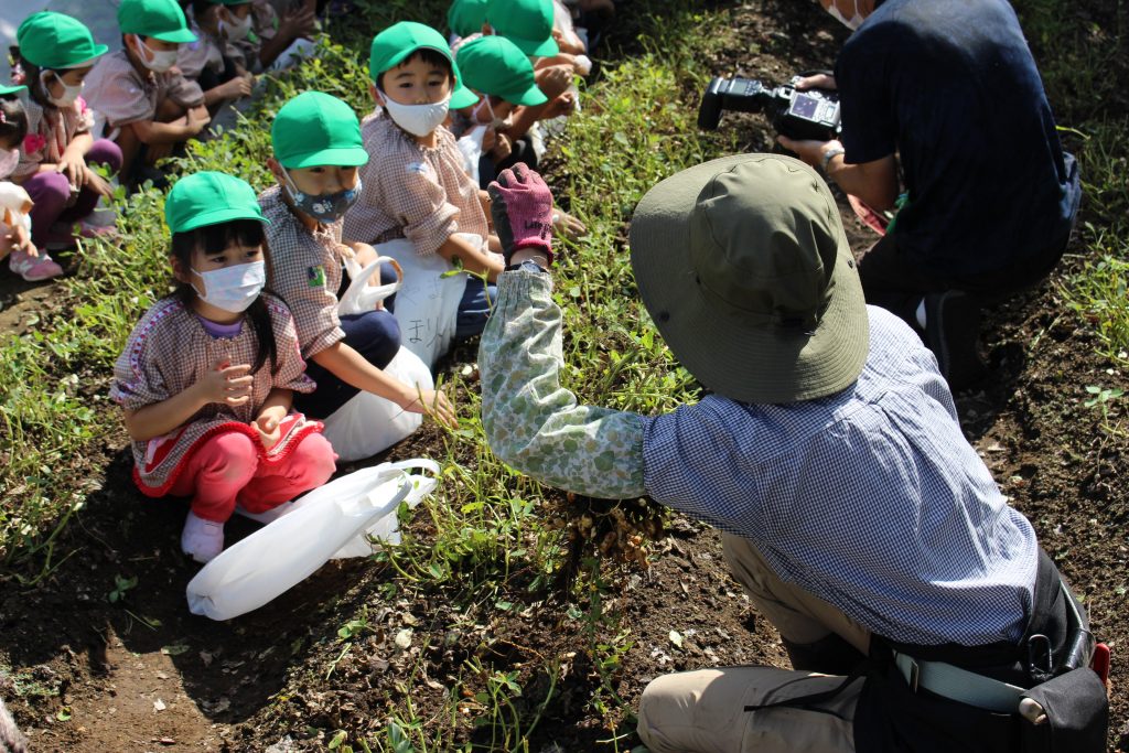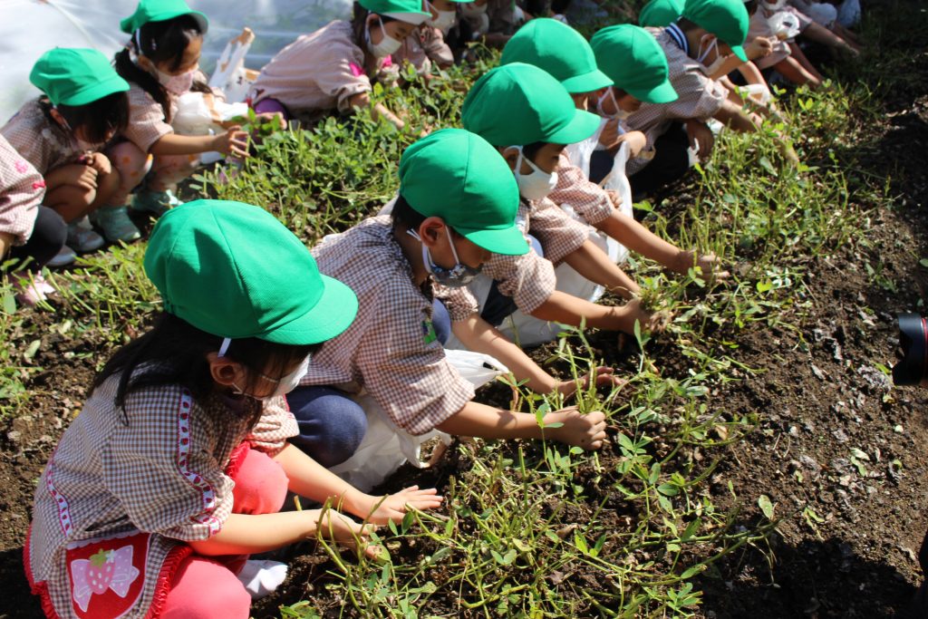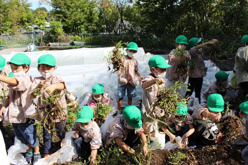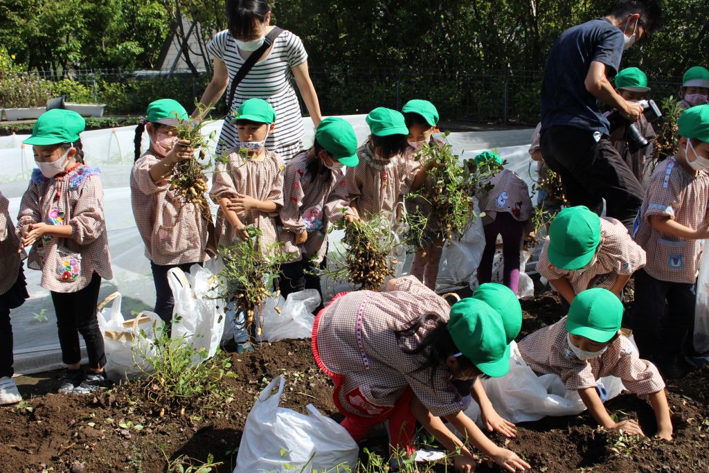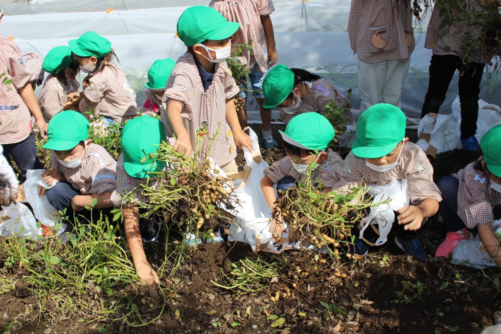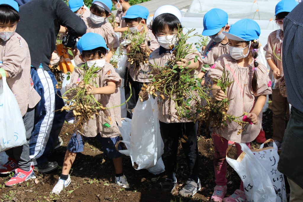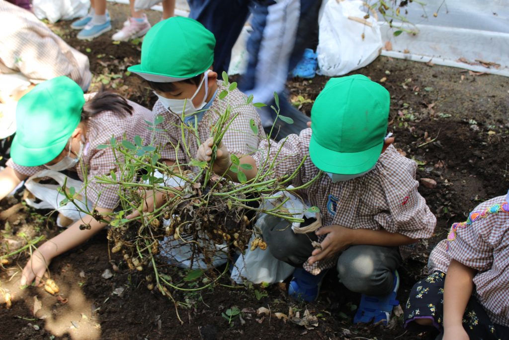 落花生の収穫は、初めて体験する子が多いようで、土の中からたくさんついて出てくると「わー!」と歓声をあげたり、「おもしろい!」と落花生をじっと観察し、驚きや発見がある子もいたようでした。