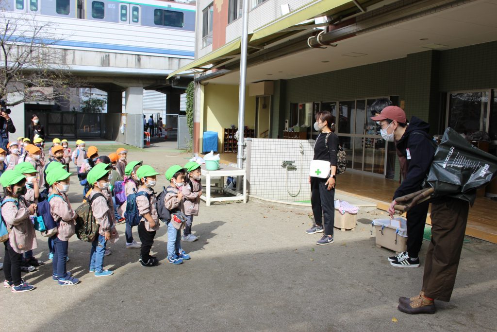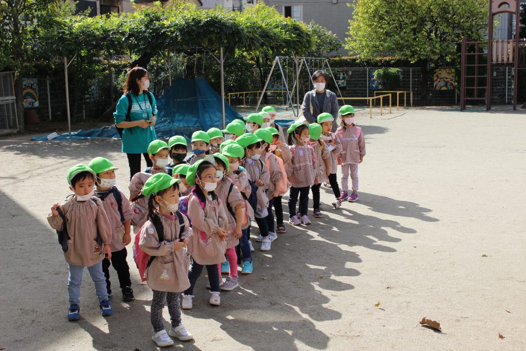 年少組は、昨日の実施となりました。朝の登園から「きょう、いもほりだ!」と言葉にしたり、嬉しそうにリュックを背負ってクラスへ向かっていく姿から楽しみにしていたことがうかがえました。