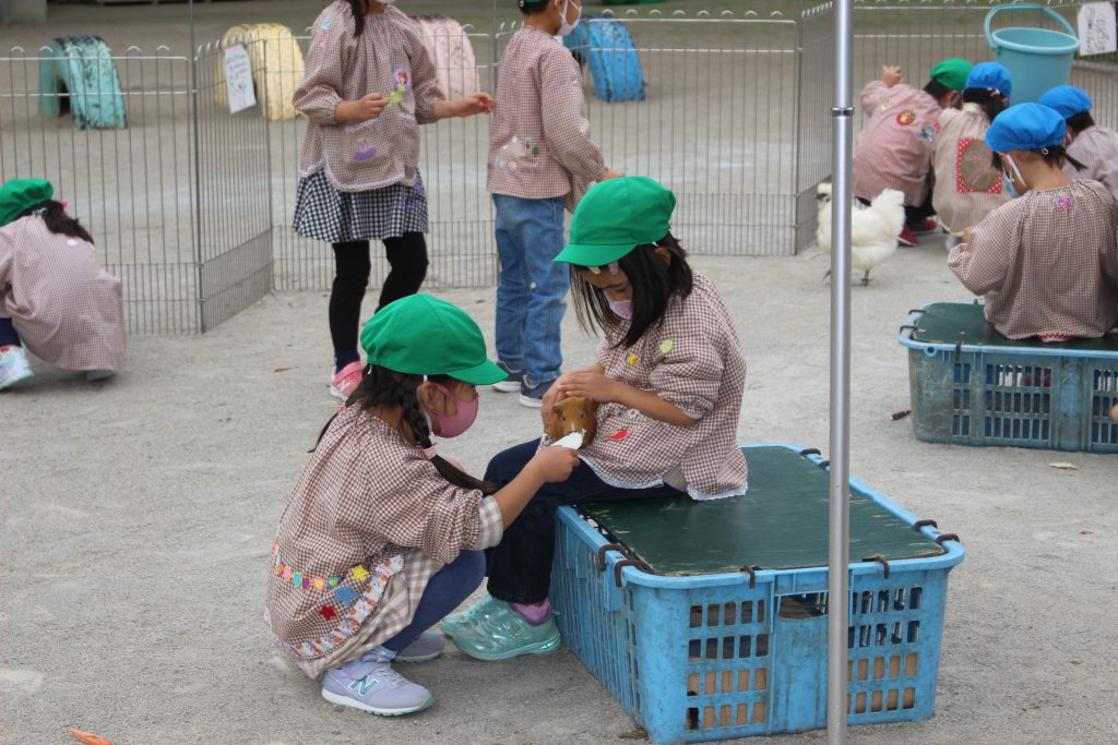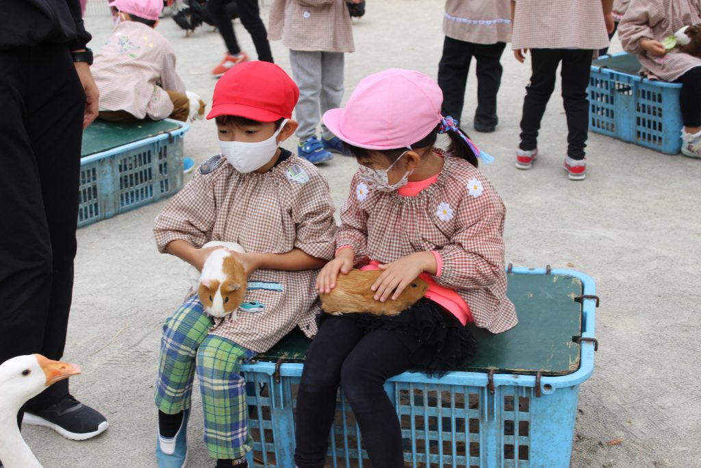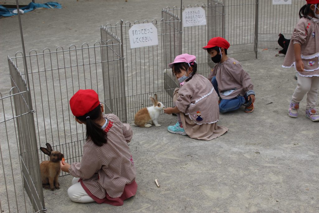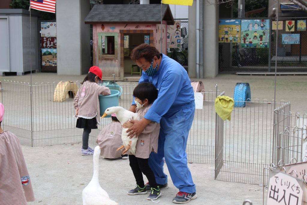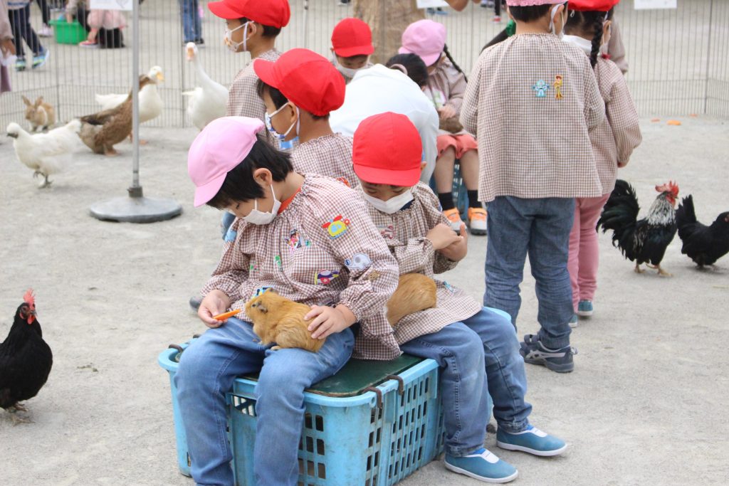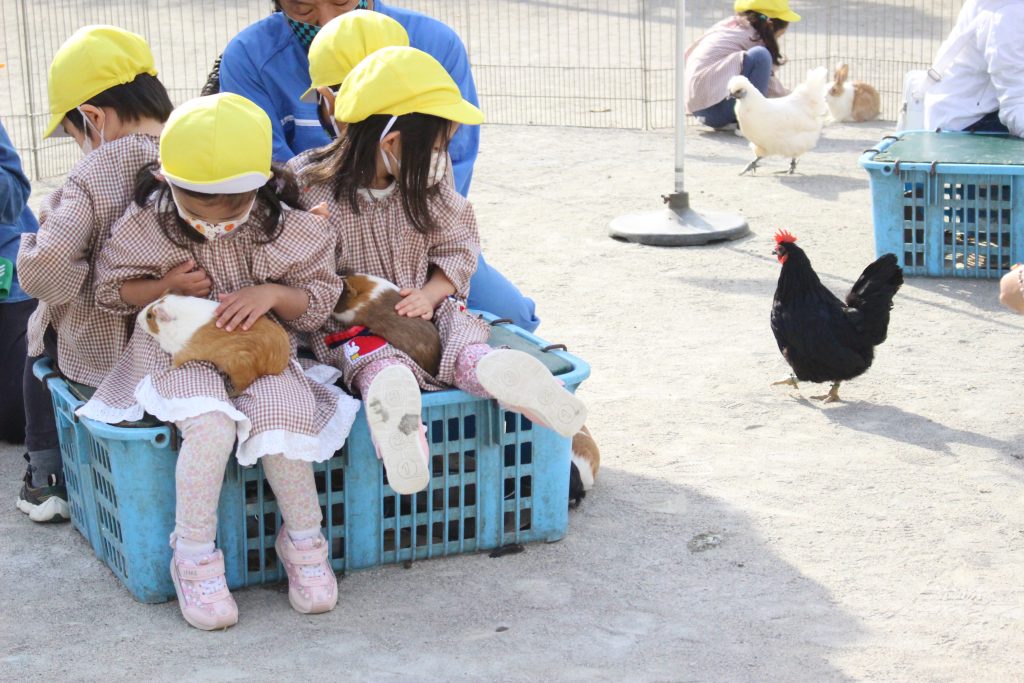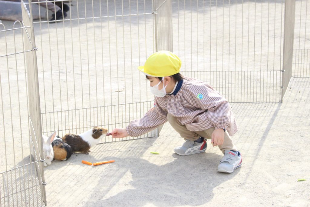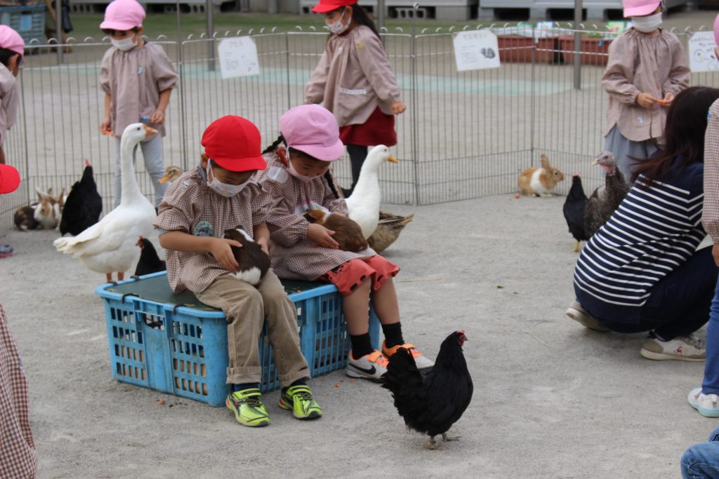 さまざまな動物とかかわる中で、動物に親しみを感じ、優しく思いやりをもって触れたり、関心を広げる体験ができたようです。「ふわふわしてる!」「小さくてかわいい。」「少し怖い!」「優しい目をしているよ。」など動物に触れた時の感触や思ったことを友だちや担任たちと共感し合う様子が印象的でした。天気が少し心配でもありましたが、本園の特色の一つである『本物に触れる教育』の行事として実施することができ、五感を使い、一人ひとりの感性がまた少し豊かになったのではないかと思います。