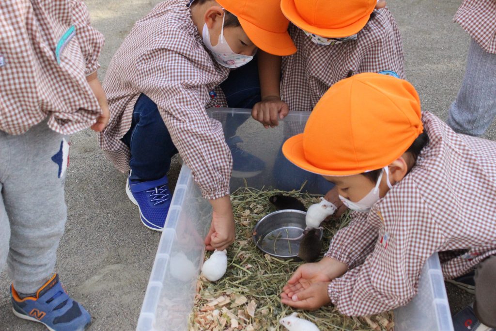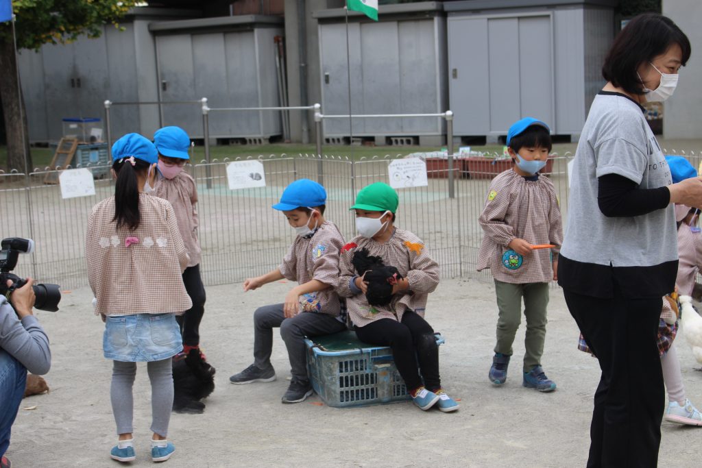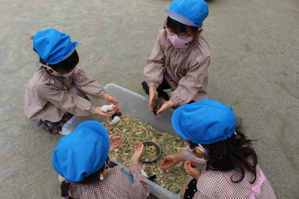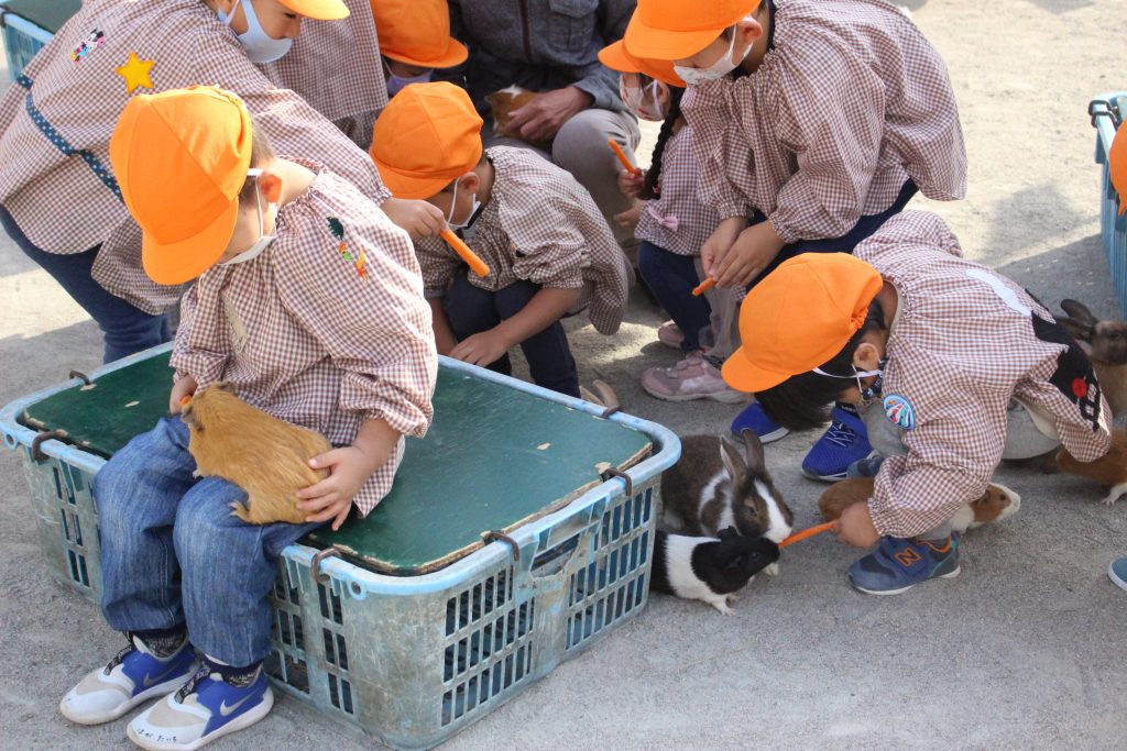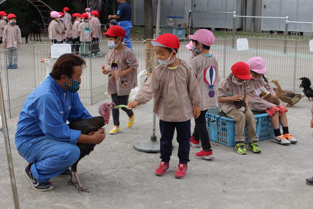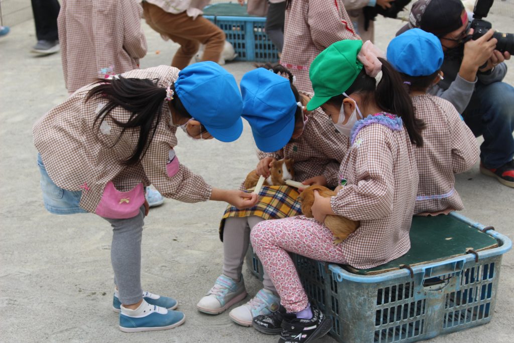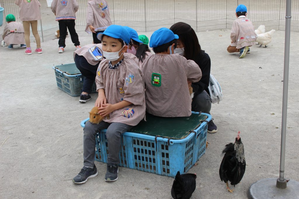 さまざまな動物とかかわる中で、動物に親しみを感じ、優しく思いやりをもって触れたり、関心を広げる体験ができたようです。「ふわふわしてる!」「小さくてかわいい。」「少し怖い!」「優しい目をしているよ。」など動物に触れた時の感触や思ったことを友だちや担任たちと共感し合う様子が印象的でした。天気が少し心配でもありましたが、本園の特色の一つである『本物に触れる教育』の行事として実施することができ、五感を使い、一人ひとりの感性がまた少し豊かになったのではないかと思います。