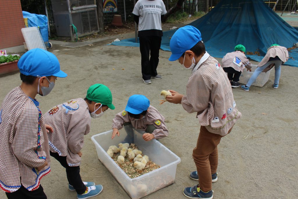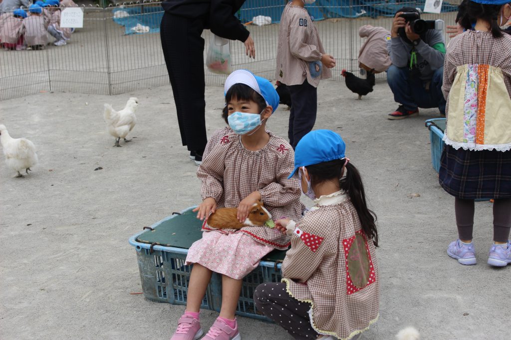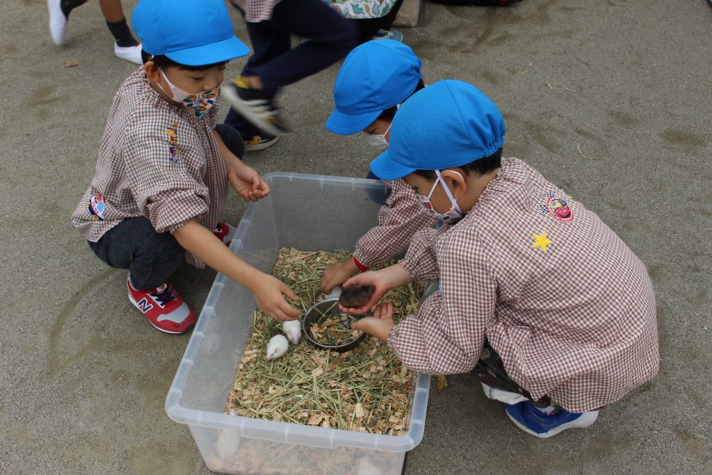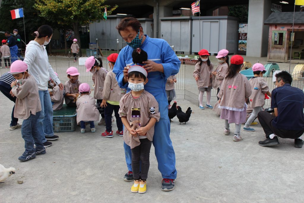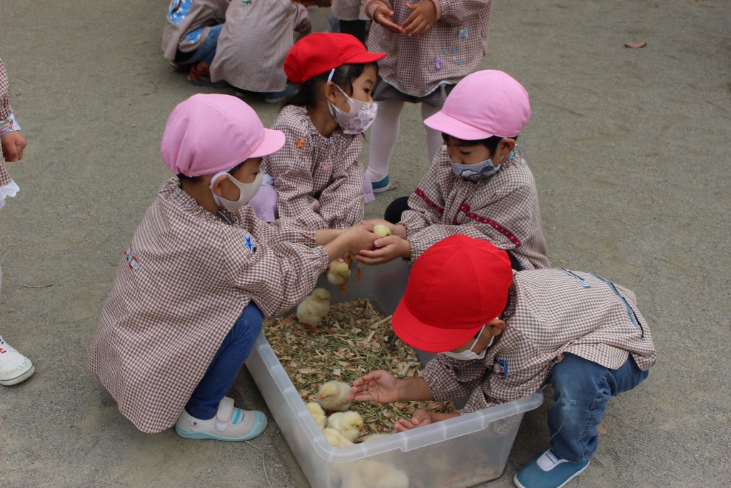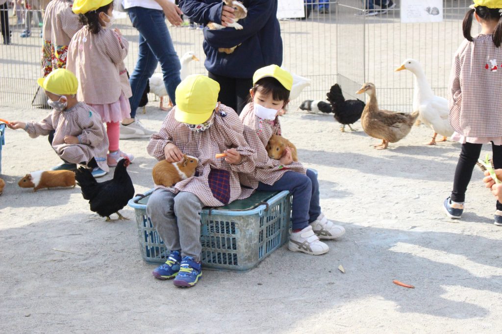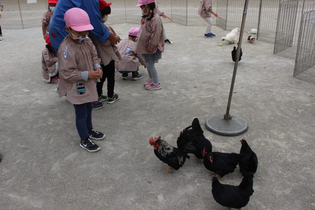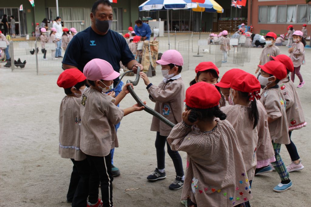 さまざまな動物とかかわる中で、動物に親しみを感じ、優しく思いやりをもって触れたり、関心を広げる体験ができたようです。「ふわふわしてる!」「小さくてかわいい。」「少し怖い!」「優しい目をしているよ。」など動物に触れた時の感触や思ったことを友だちや担任たちと共感し合う様子が印象的でした。天気が少し心配でもありましたが、本園の特色の一つである『本物に触れる教育』の行事として実施することができ、五感を使い、一人ひとりの感性がまた少し豊かになったのではないかと思います。