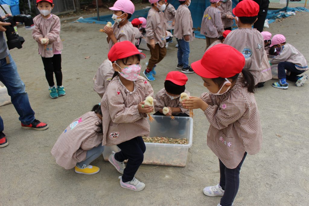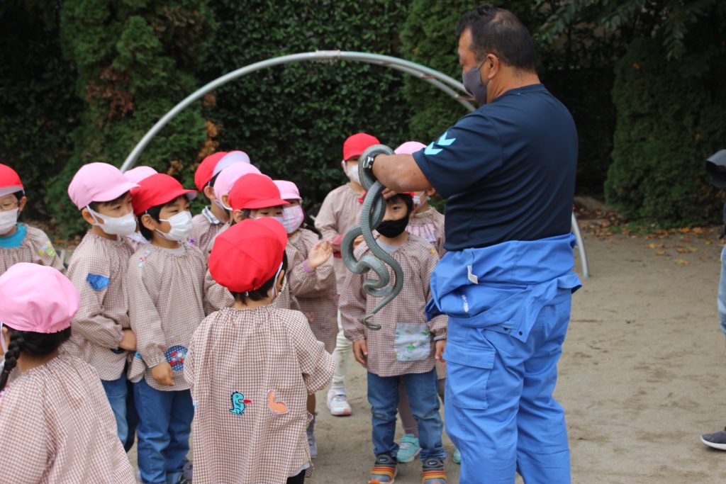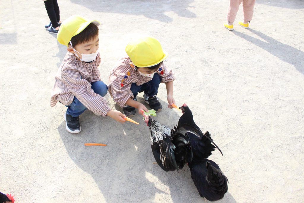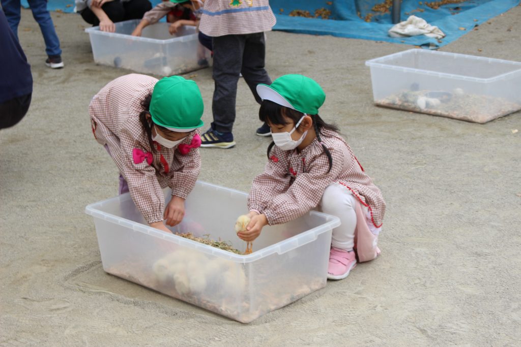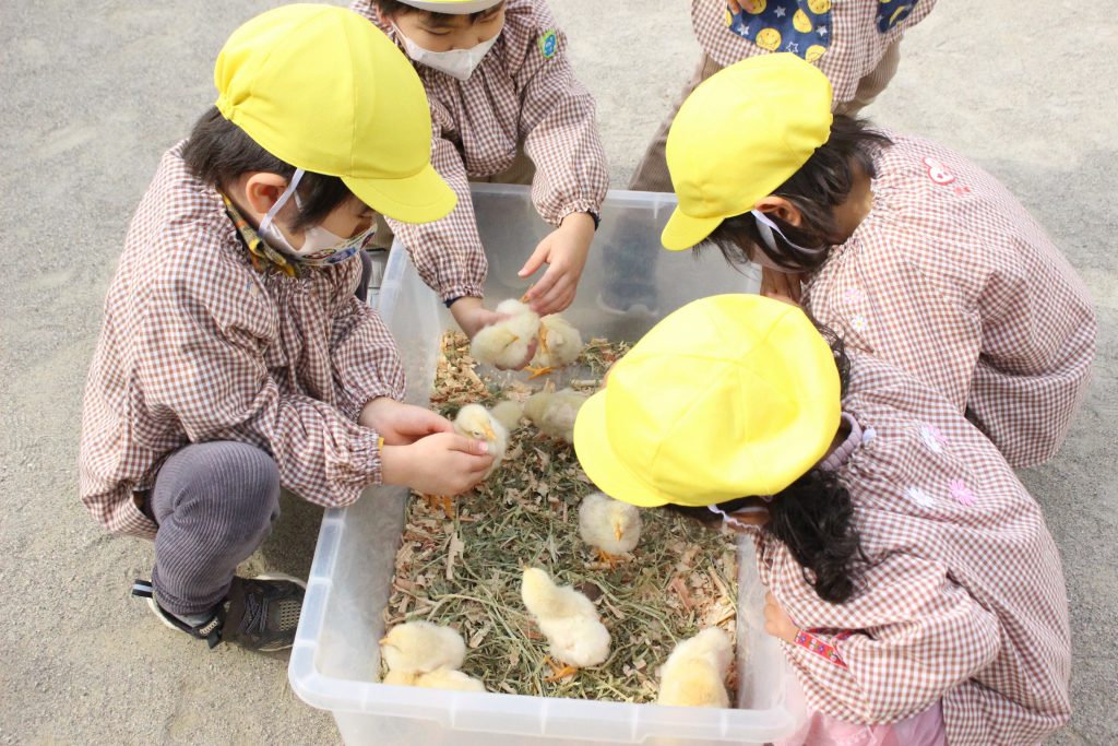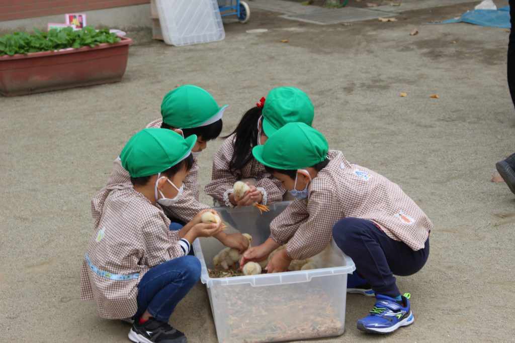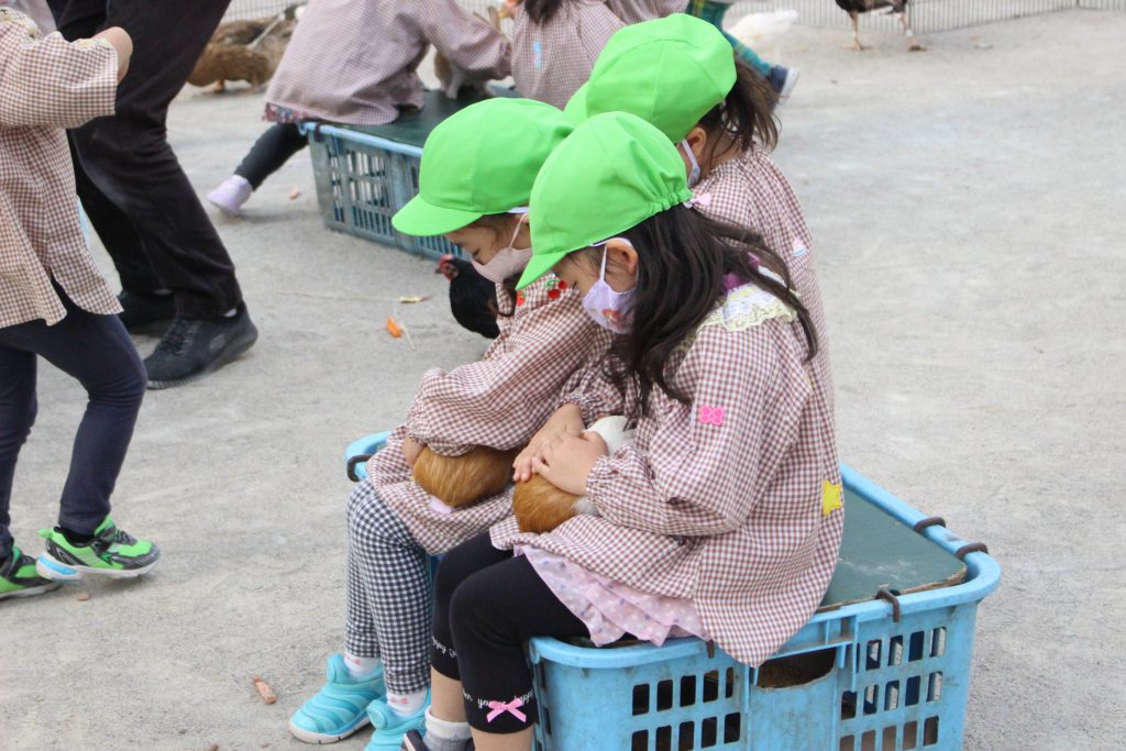 さまざまな動物とかかわる中で、動物に親しみを感じ、優しく思いやりをもって触れたり、関心を広げる体験ができたようです。「ふわふわしてる!」「小さくてかわいい。」「少し怖い!」「優しい目をしているよ。」など動物に触れた時の感触や思ったことを友だちや担任たちと共感し合う様子が印象的でした。天気が少し心配でもありましたが、本園の特色の一つである『本物に触れる教育』の行事として実施することができ、五感を使い、一人ひとりの感性がまた少し豊かになったのではないかと思います。