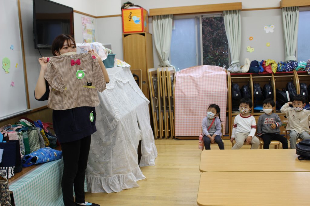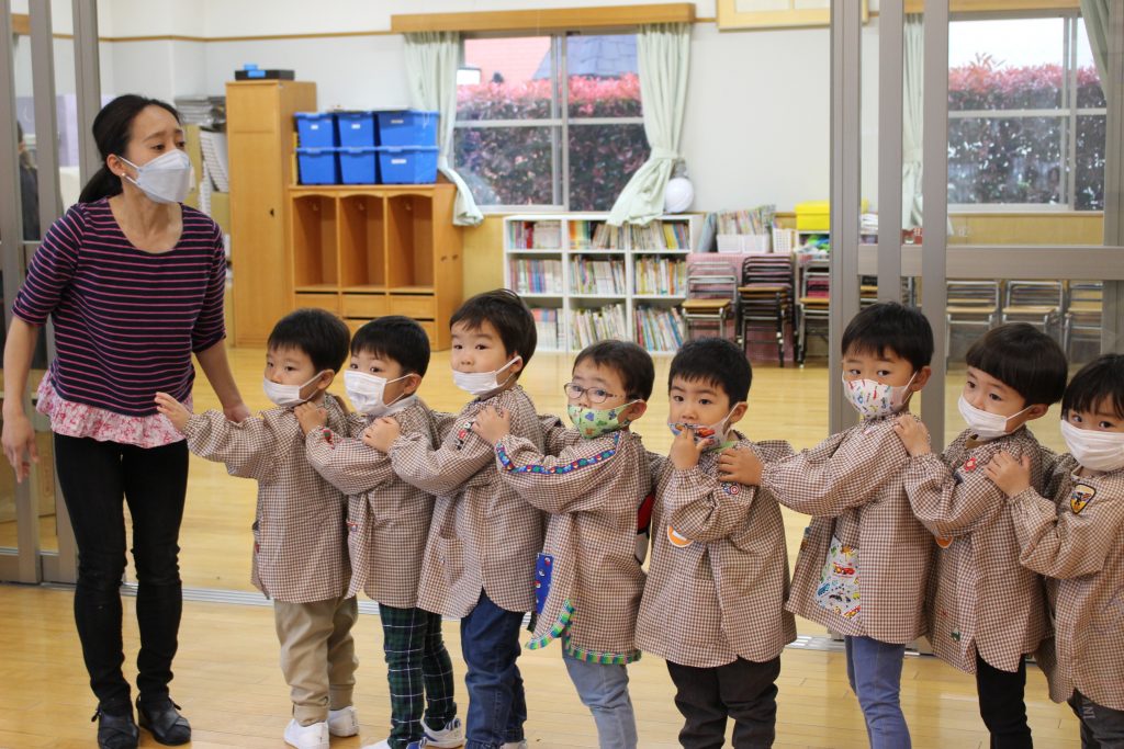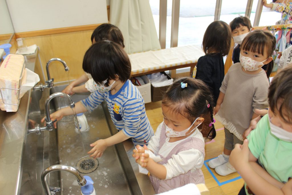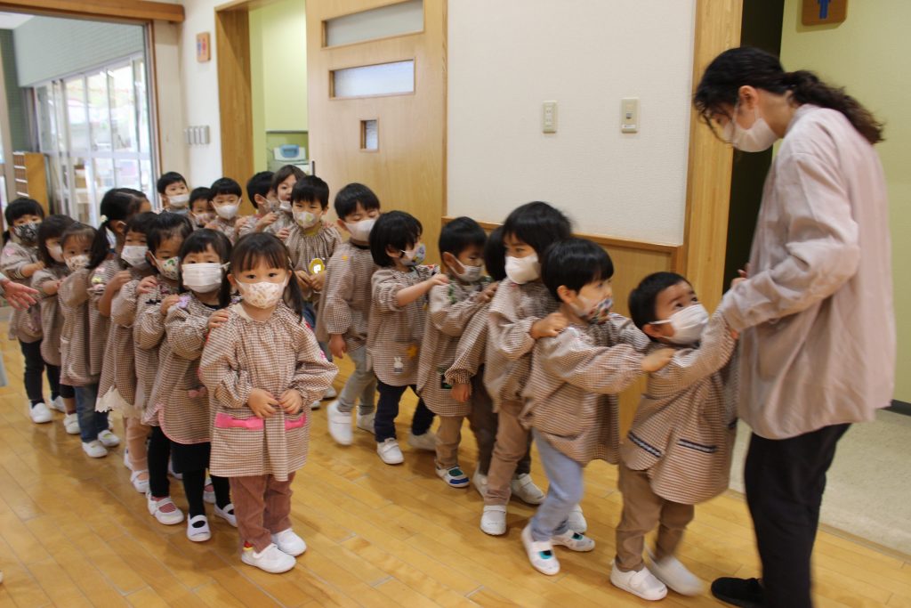 年少組は、基本的な生活習慣や園生活のリズムを身につけることも非常に重要です。生活習慣の個人差が大きい時期ですが、各ご家庭と連携していきながら、自立を促していきたい思います。