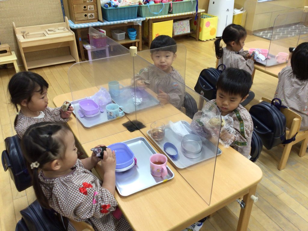本園では、5月連休明けまで少しずつ園生活に慣れていくよう食事の量を増やし、降園時間も日々延ばしていきます。教育要領に食育が加わり、現代では子ども達の食事の質が問われていると思います。誰とどこで何を食べるかを配慮し、食べることの大切さを園でも伝えていきたいと思います。