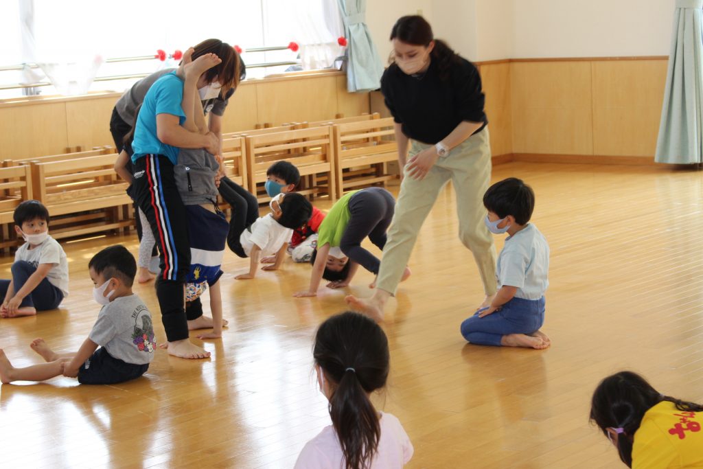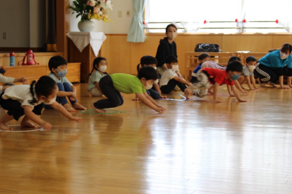 昨年度から開始した正課運動あそび。本園の教育方針である『あそびを通して学びに向かう力、豊かな心、たくましい体を育てる』の中の特にたくましい体を育てるという点で、この活動が大きく成長を促していると思います。