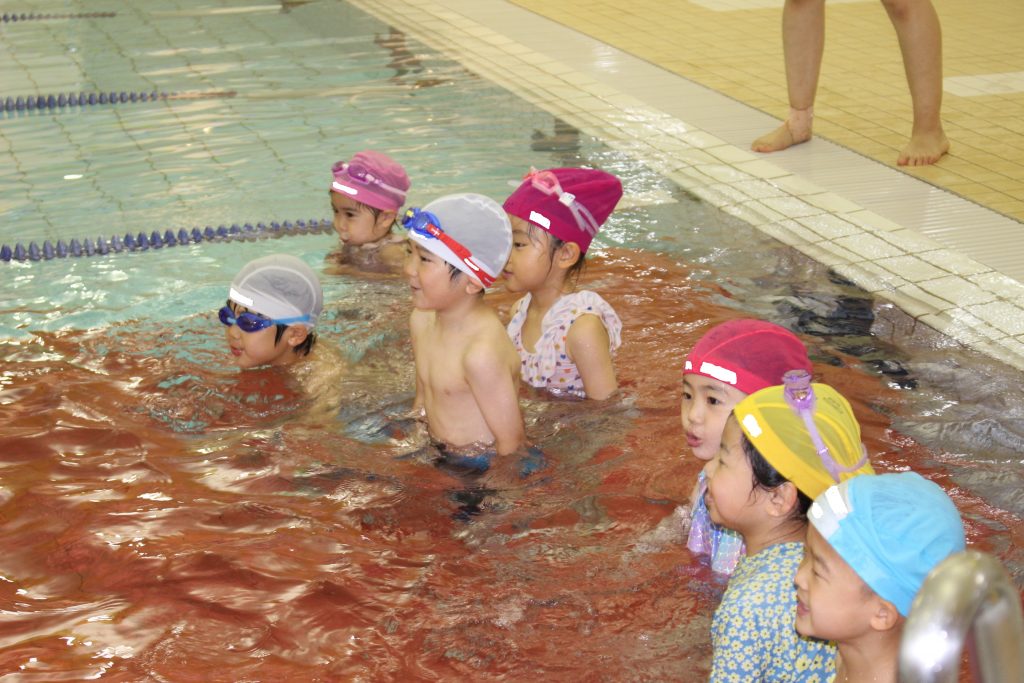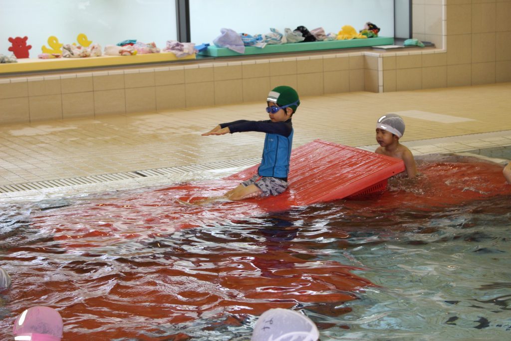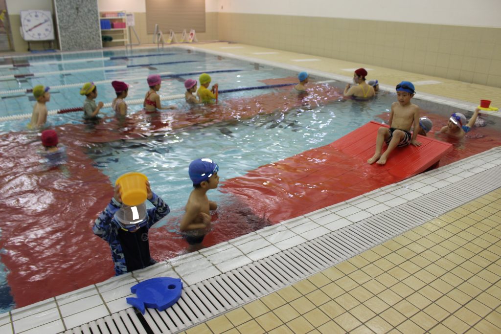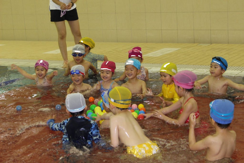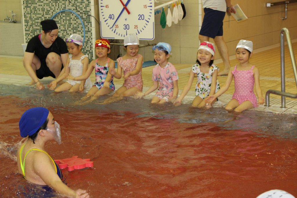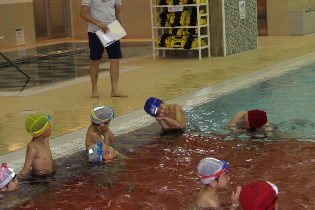年長組は、ライズにあるアトリオドゥーエ二子玉川のプールをお借りして水泳指導を行いました。今年度は年間で11回の実施予定です。