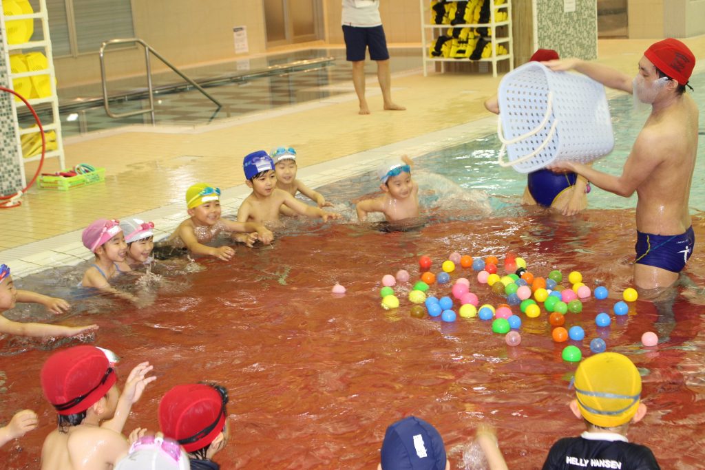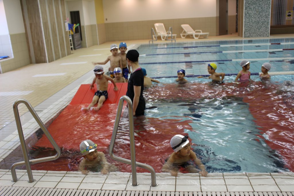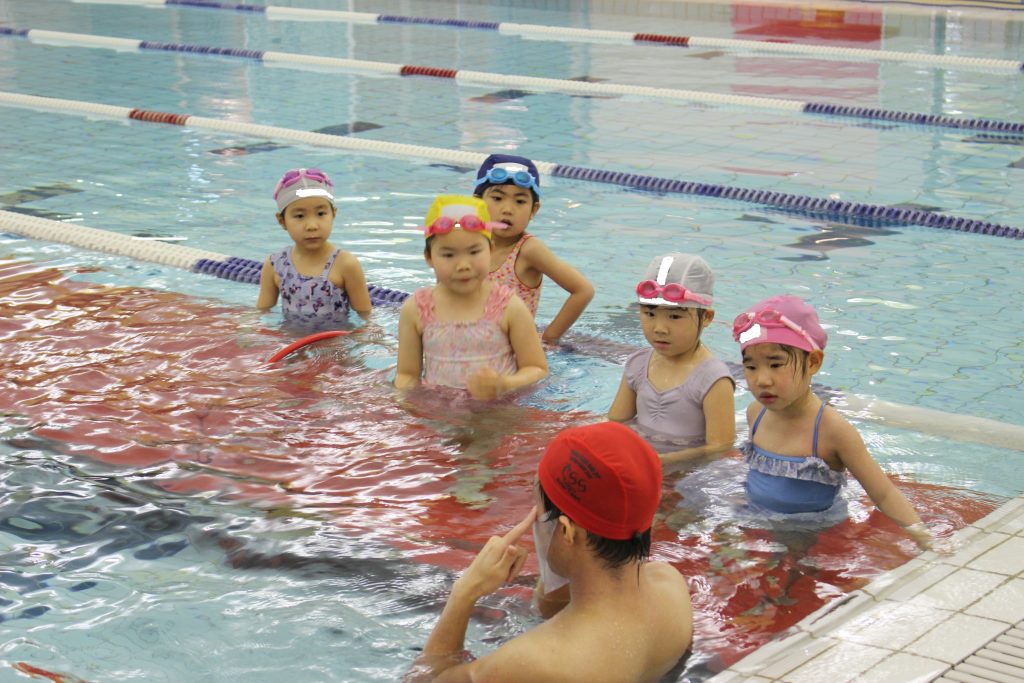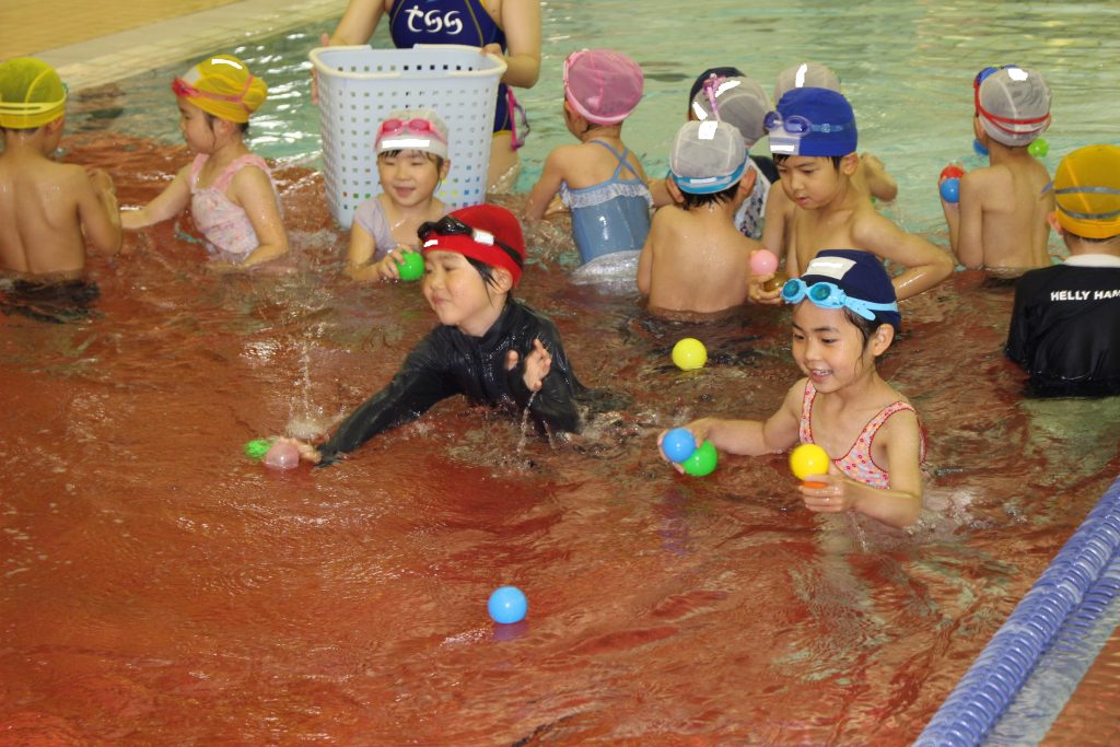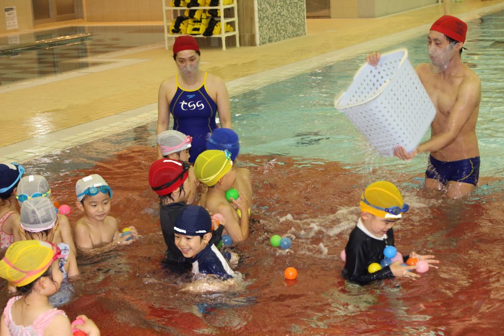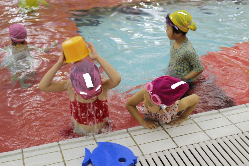 年長組は、ライズにあるアトリオドゥーエ二子玉川のプールをお借りして水泳指導を行いました。今年度は年間で11回の実施予定です。