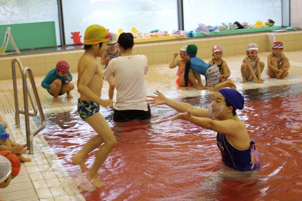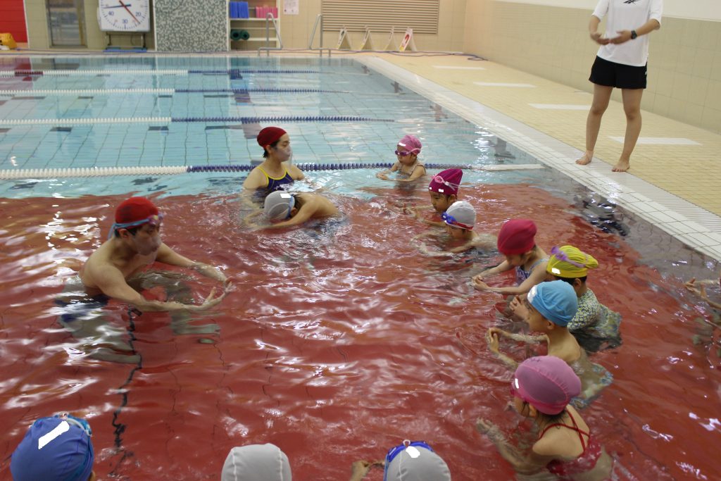 水泳という活動の中で、まずは子ども達には水に慣れ親しみ、楽しく存分にあそんでほしいと思います。もちろん、水の怖さや危険を知ることも大切です。体験を通して、一人ひとりが水の特質を感じ取り、『水となかよし』になれると良いと考えています。