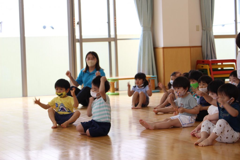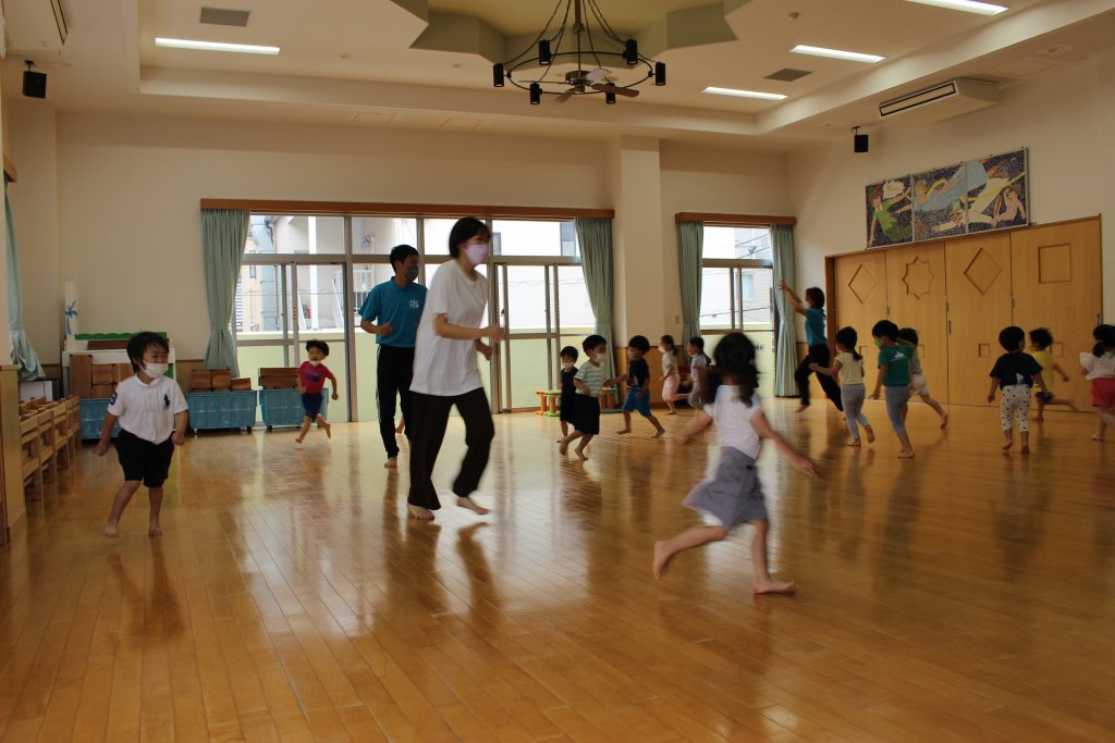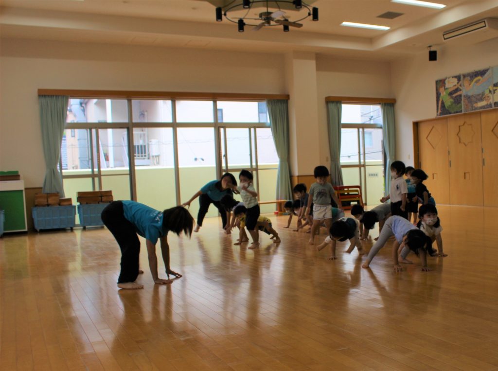 幼児期の健康について考えると、まず第一に身体をよく動かすことが非常に大切だと思います。運動は、筋肉を刺激し発達させるだけでなく、神経系にも刺激を与え、心肺機能や骨の形成にも大きく関わります。そして、この時期にのびのびと身体を動かしてあそぶことで、何事にも意欲的に取り組む気持ちや情緒の安定など健やかな心も育まれると思います。そう考えると、子ども達の心身の成長に運動は欠かせないものであります。今後もさまざまな運動を保育の中に取り入れ、楽しみながら、成長を促していきたいと思います。