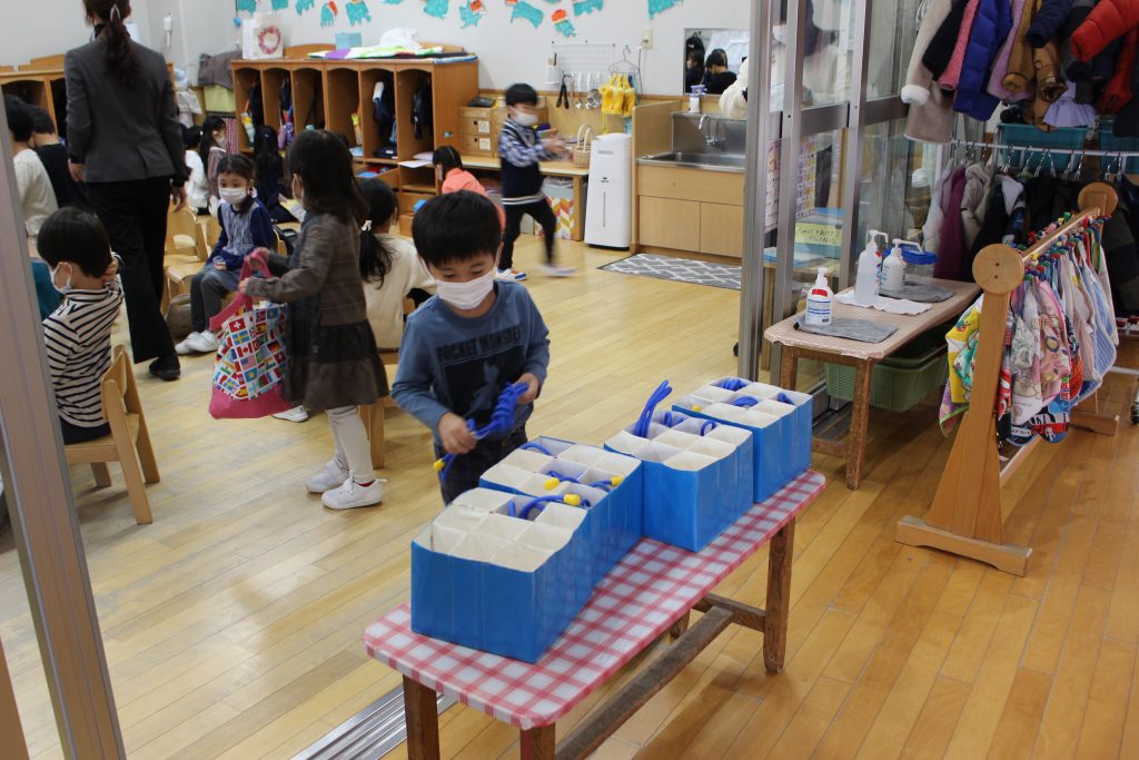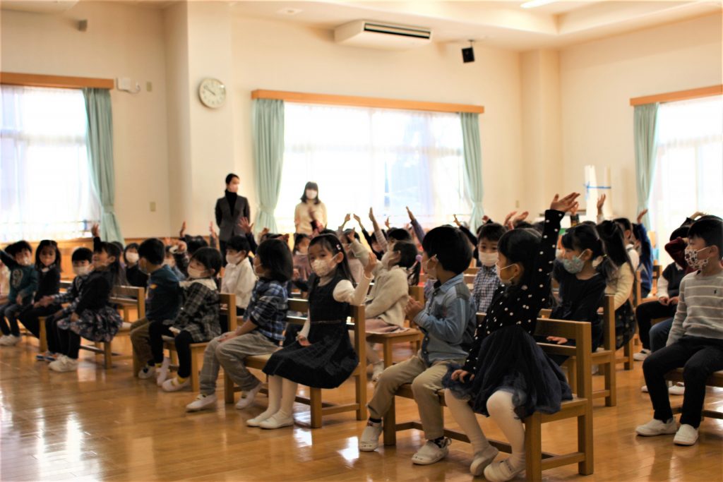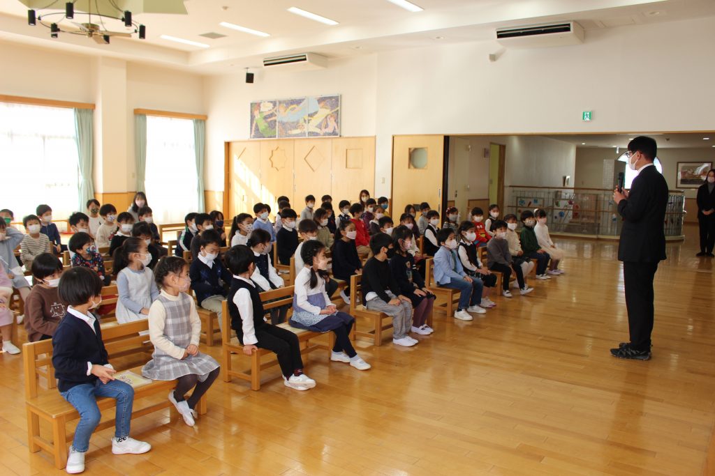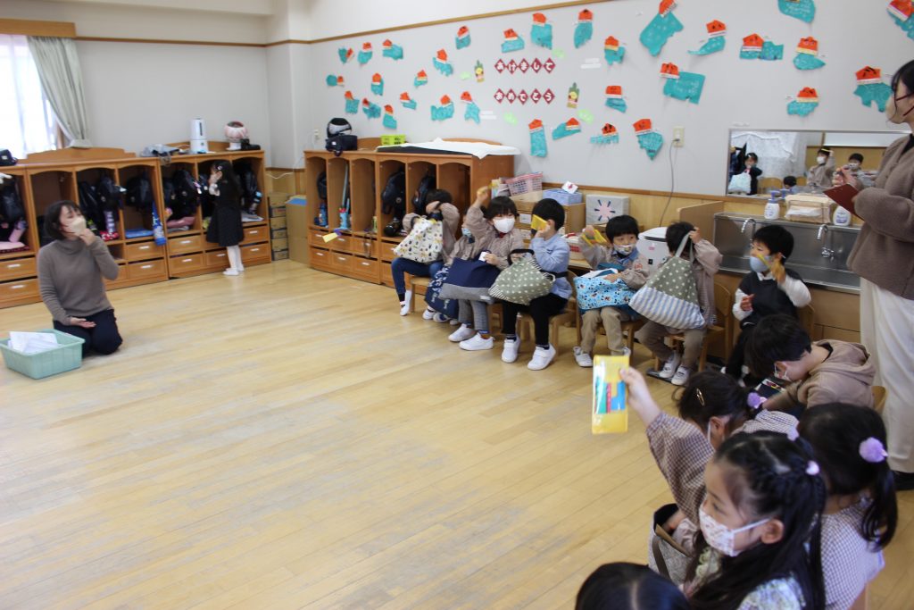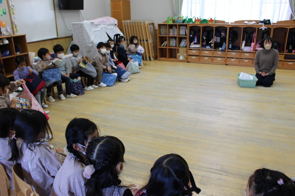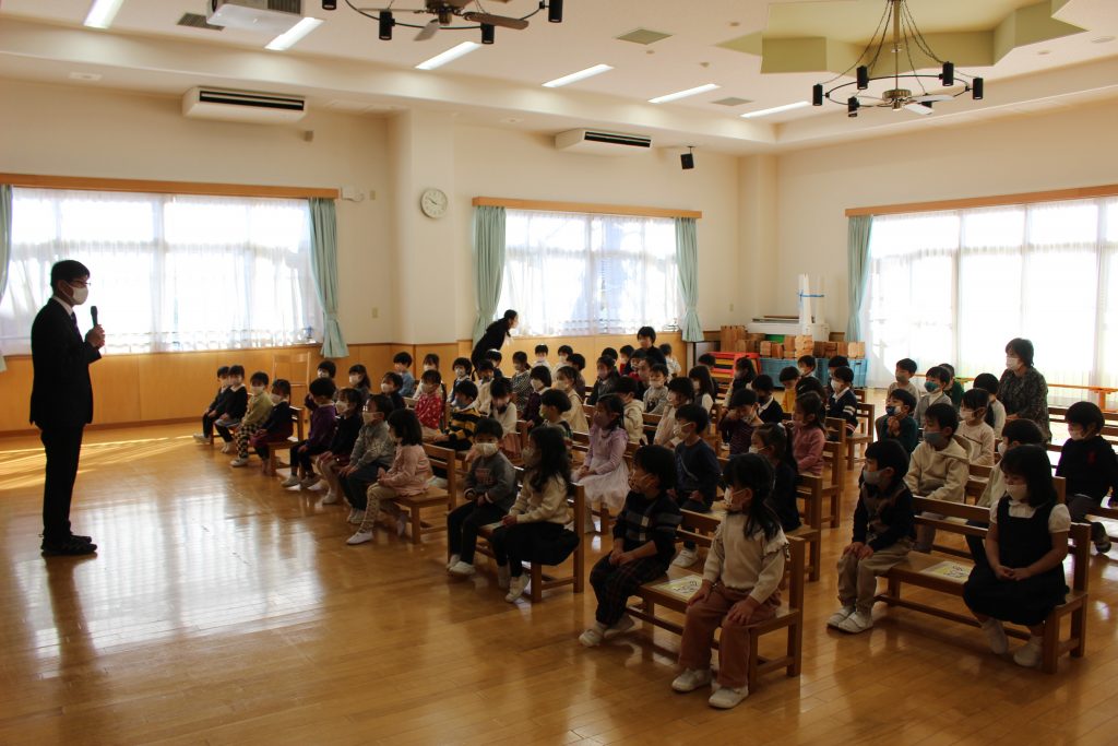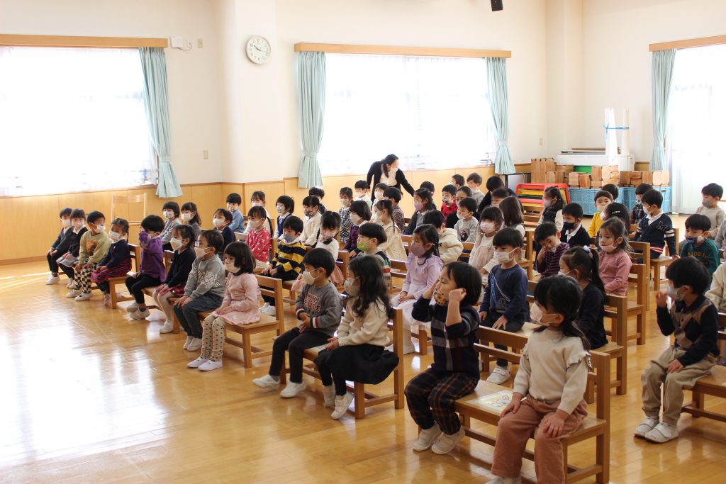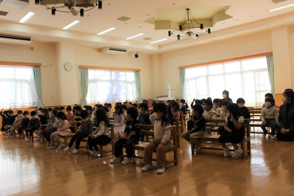 それぞれのクラスでは、友だちや担任たちと久しぶりの再会を喜び合ったり、冬休みに経験したことを早く伝えたいといった様子が見られていました。園長先生のお話から、3学期は約50日間と短いことや進級・進学へ向かうまとめの大切な時期であることを教えていただきました。