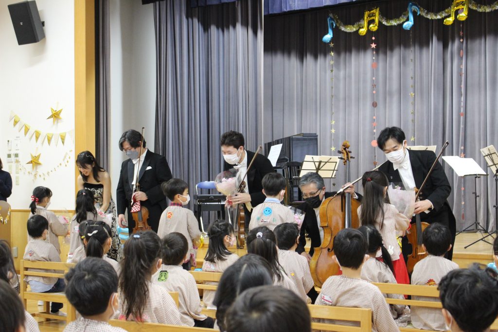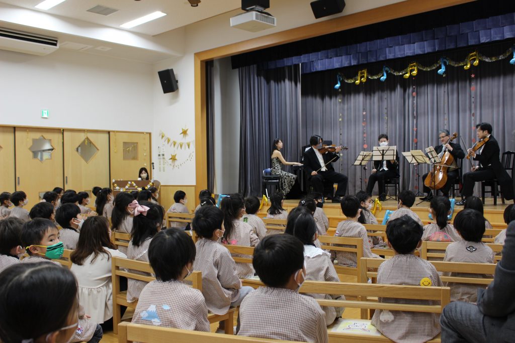 父母の会の方が主催してくださる『音楽会』が行われました。今年もNHK交響楽団の方をお招きして、弦楽器とピアノの演奏を聴かせていただきました。