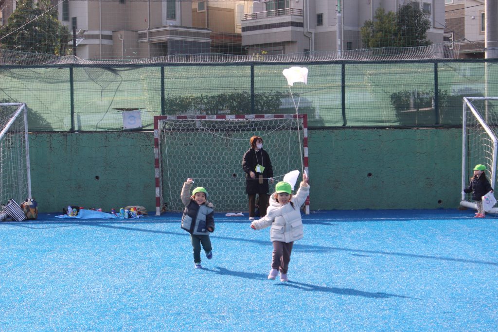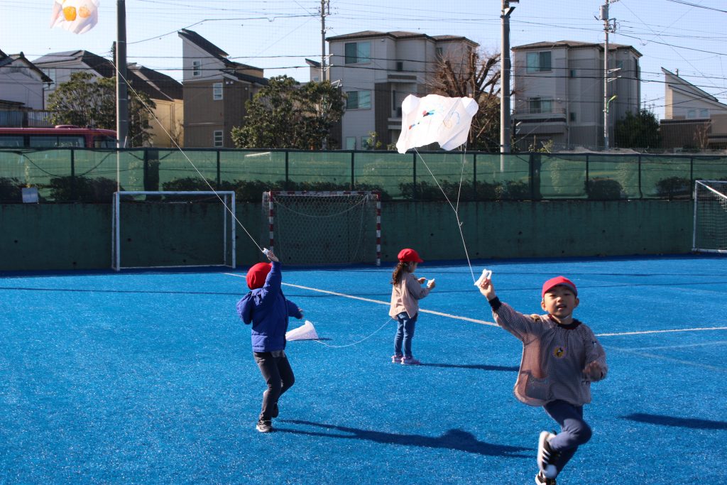 凧あげは、子どもの無病息災を祈ってあげるなど、古い歴史や特別な意味があると言われています。正月あそびは、世代を超えて受け継がれ、いつの時代の子ども達にとっても楽しむことができることを感じた日になりました。
