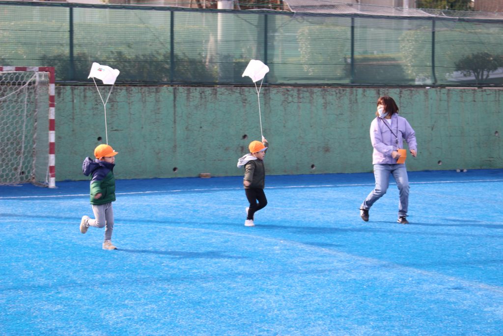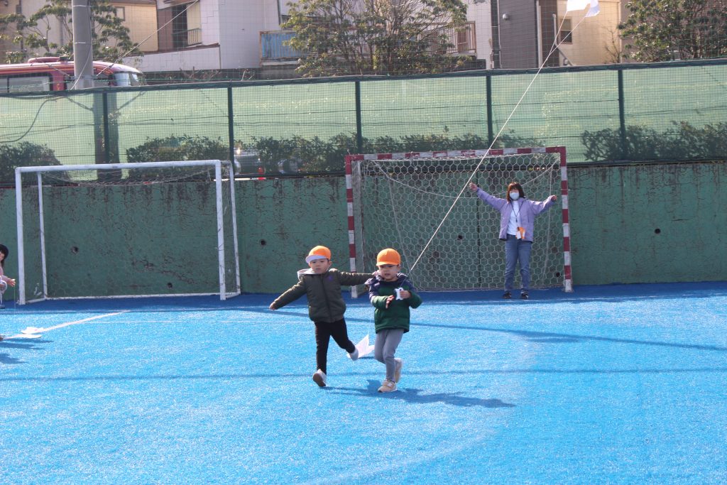 先に行ったのは年長組。私は引率はできませんでしたが、無風ながらも走りながら楽しんでいたようです。(19日に行きましたが、荒屋園長が写真撮影をしてくださいました。)