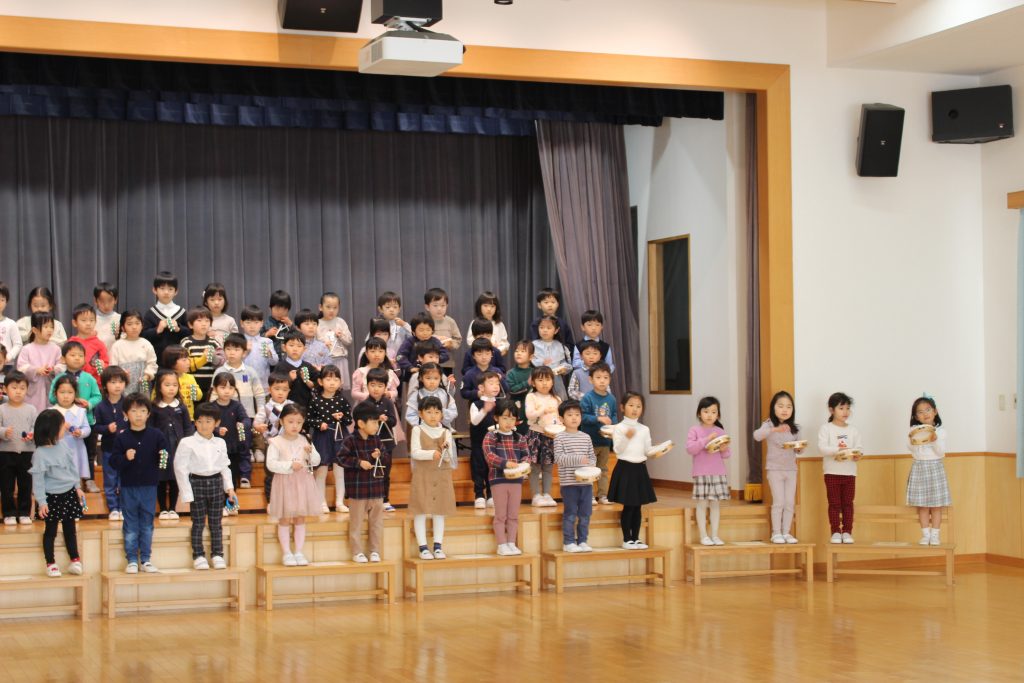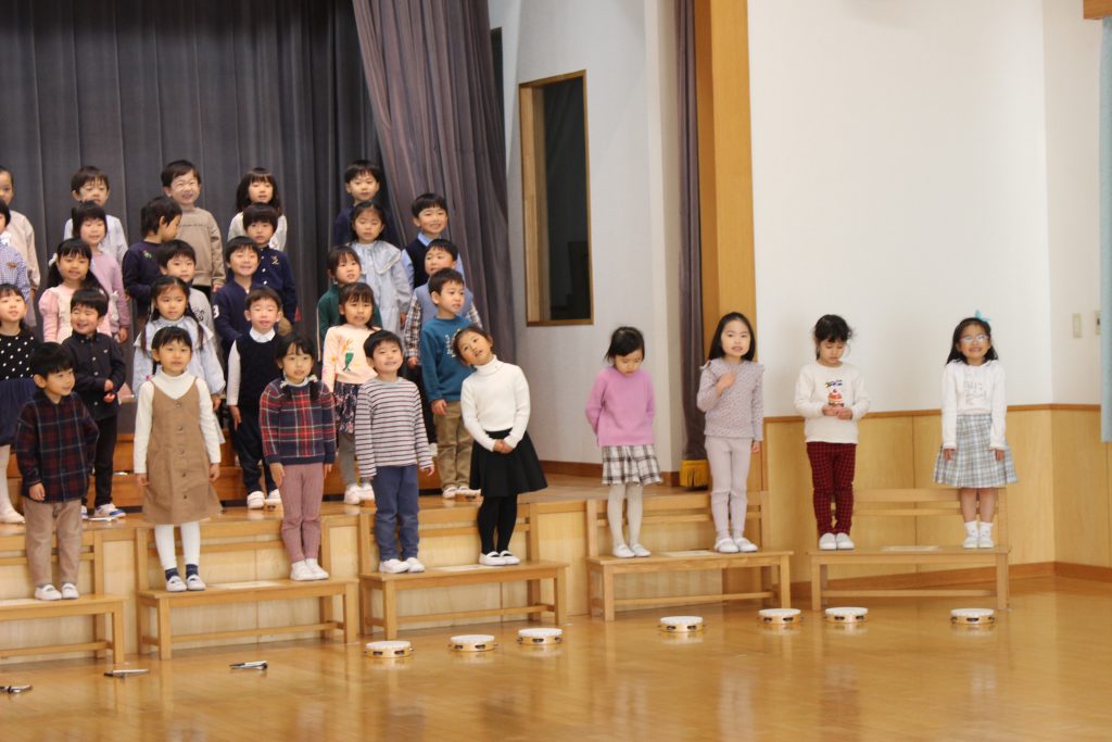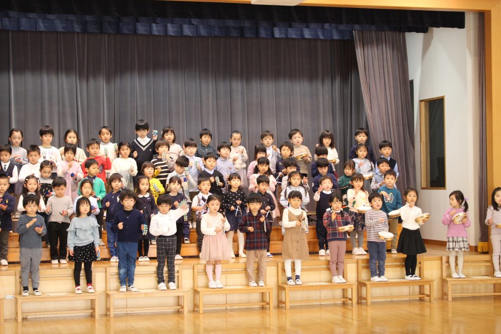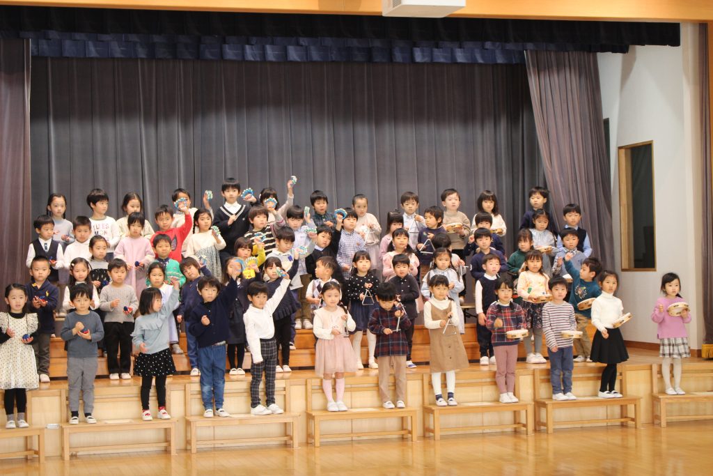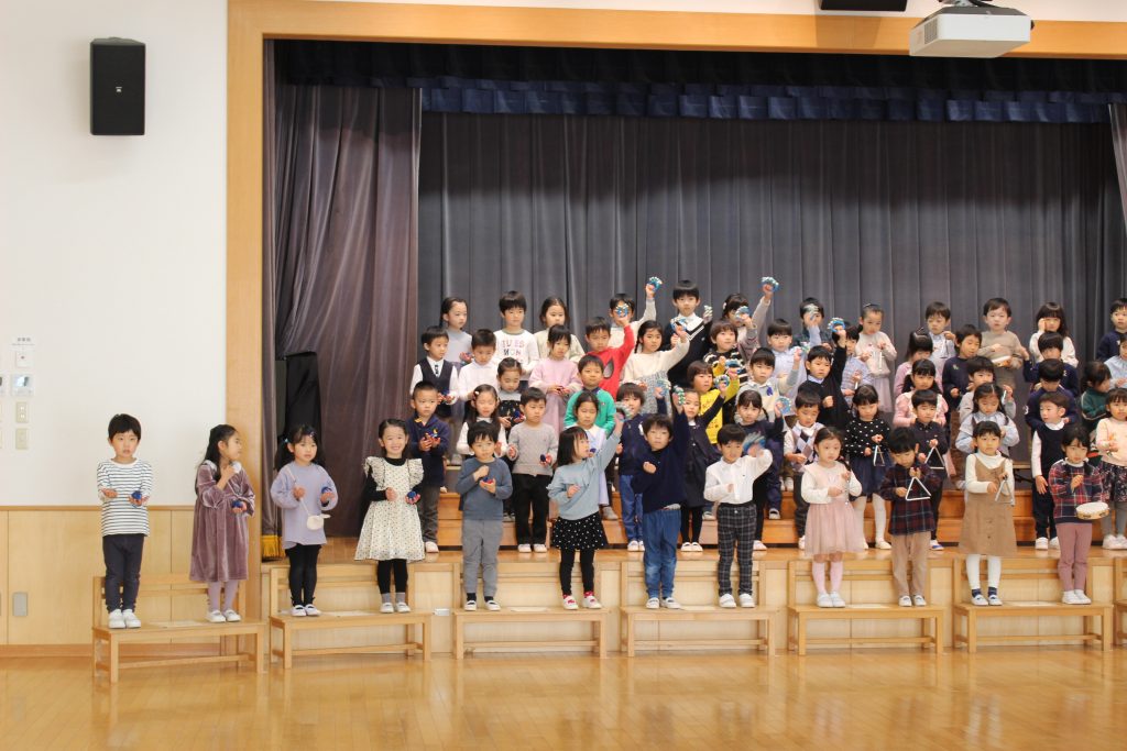 本園三大行事として位置づけている『子どもの音楽会』。今年度は新型コロナウイルスの感染状況を鑑み、コロナ禍前に実施していた発表スタイルである『歌』と『合奏』を各学年ともに発表することを決定しました。昨年度は、感染状況の悪化により、開催することを断念せざるを得ませんでした。発表することを目指して合奏2曲に取り組んでいましたが、実施しないことが決まり、動画配信アプリを活用してクラス毎の演奏を在園児保護者の皆様へ配信しました。
