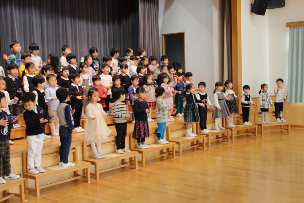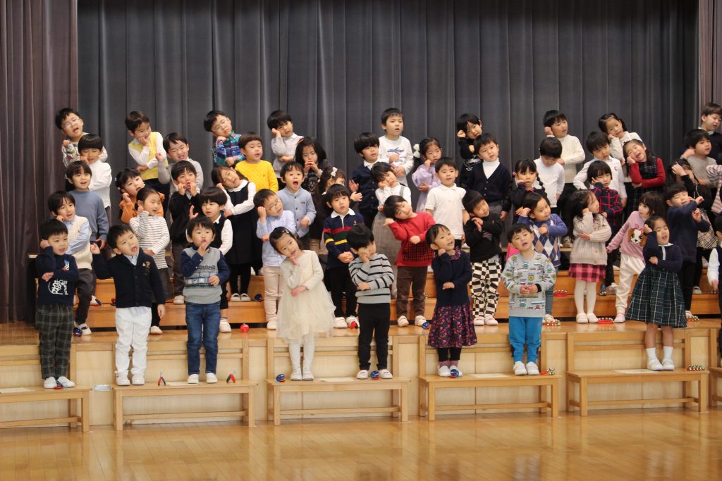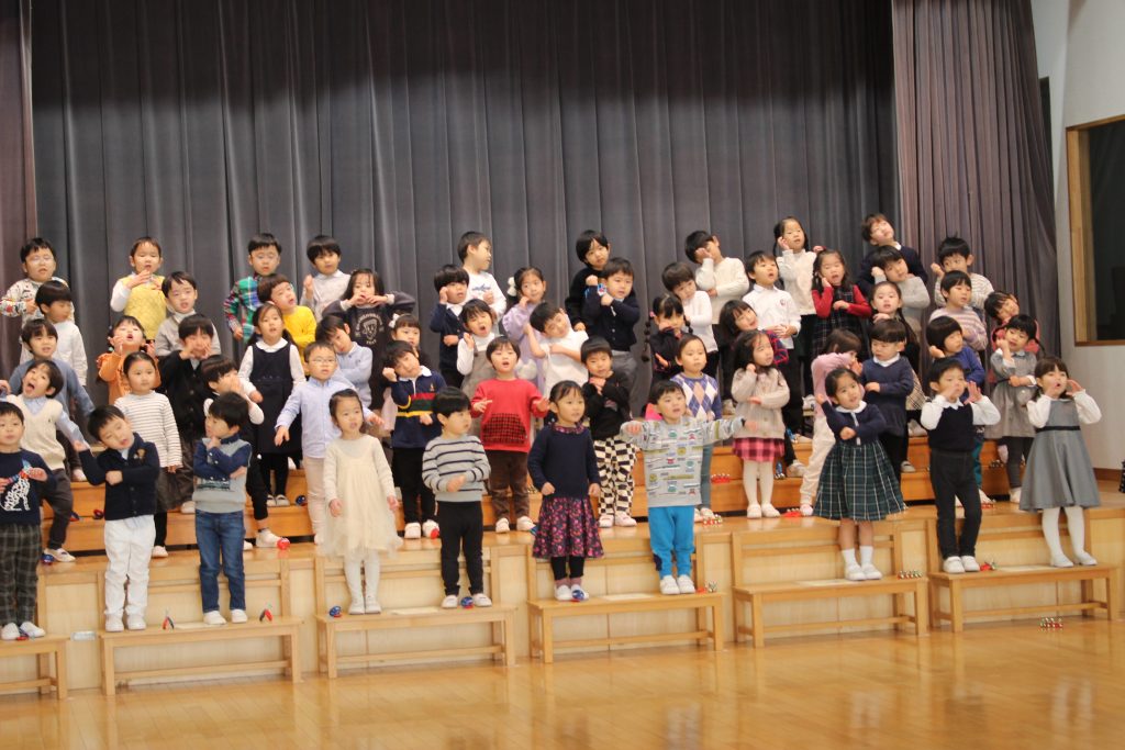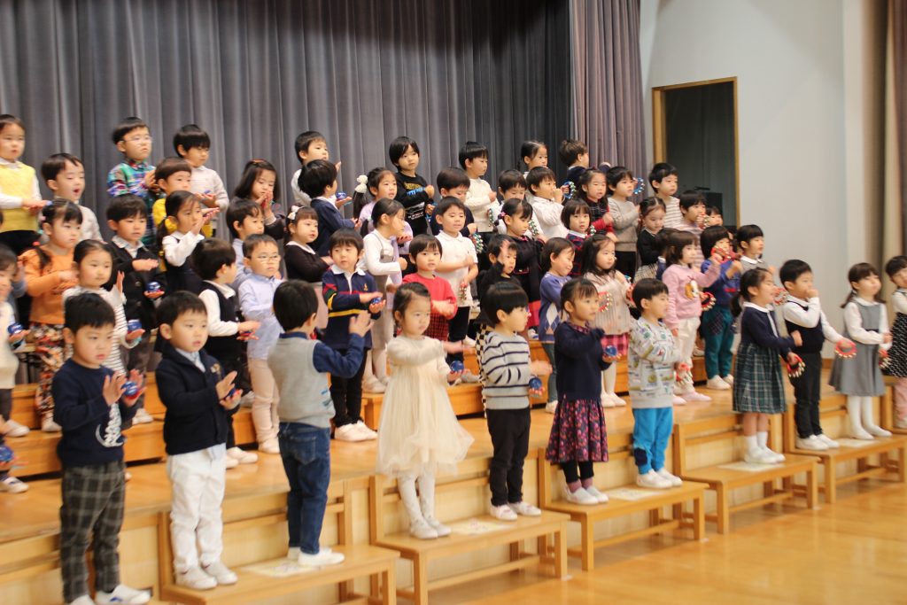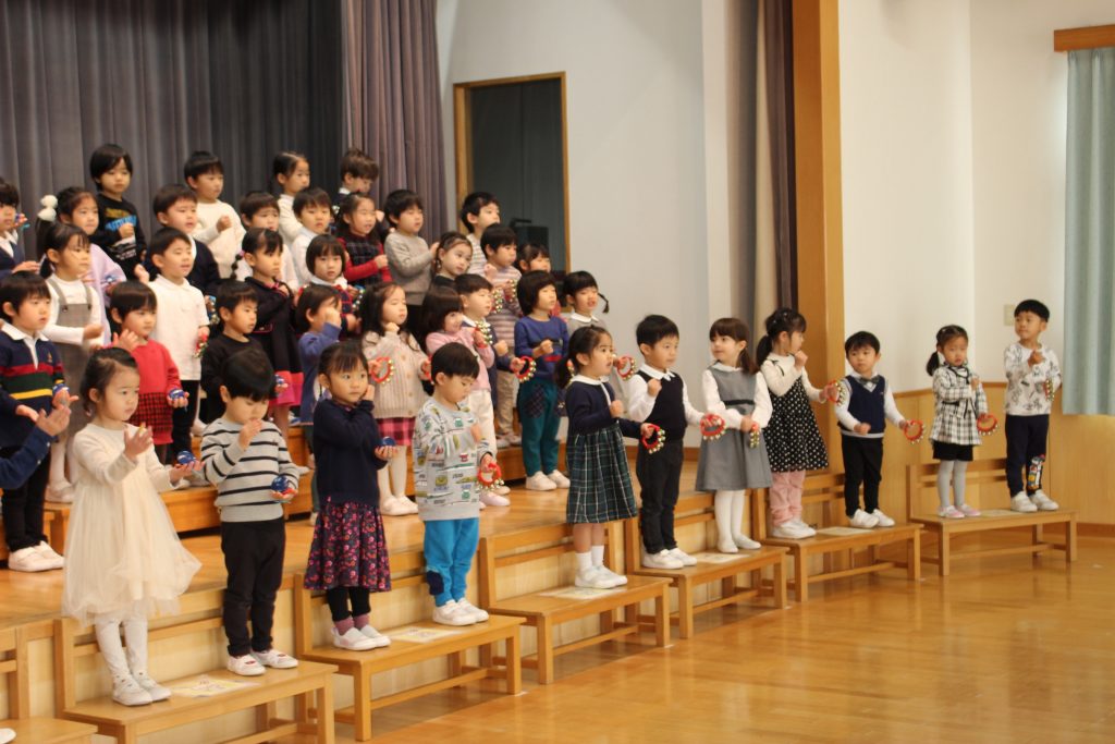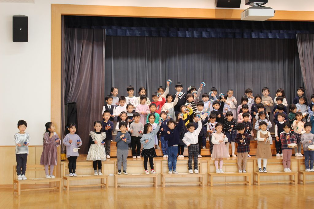 本園三大行事として位置づけている『子どもの音楽会』。今年度は新型コロナウイルスの感染状況を鑑み、コロナ禍前に実施していた発表スタイルである『歌』と『合奏』を各学年ともに発表することを決定しました。昨年度は、感染状況の悪化により、開催することを断念せざるを得ませんでした。発表することを目指して合奏2曲に取り組んでいましたが、実施しないことが決まり、動画配信アプリを活用してクラス毎の演奏を在園児保護者の皆様へ配信しました。