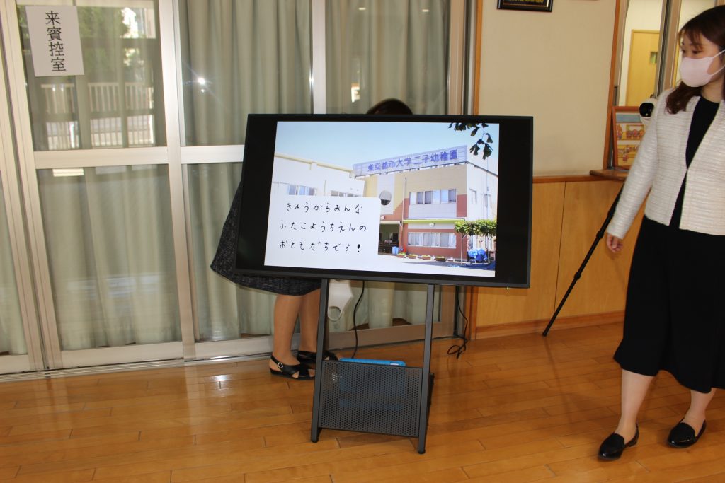 本園では、新入園児を温かく和やかに迎えるため、春休みの間に保育室の壁面を飾ったり、一人ひとりの靴箱やロッカーにシールをつけたりと安心できるような環境を整えてきました。当日までに着々と準備を重ね、今年度の年少組が仲間入りすることを職員一同心待ちにしていました。