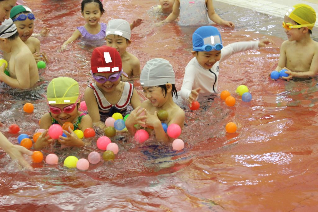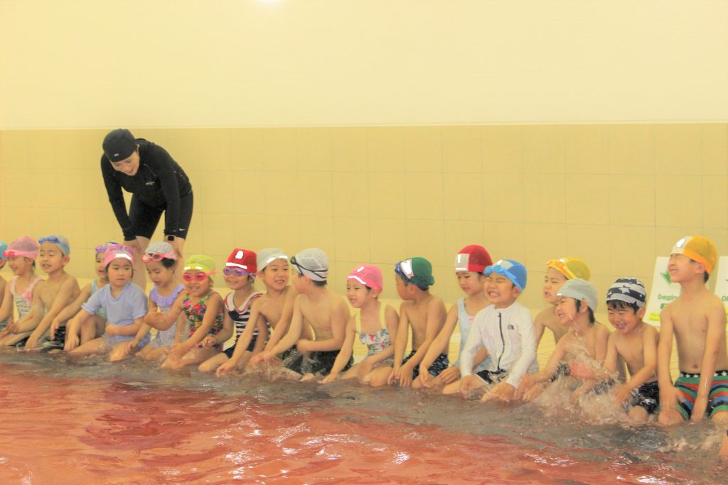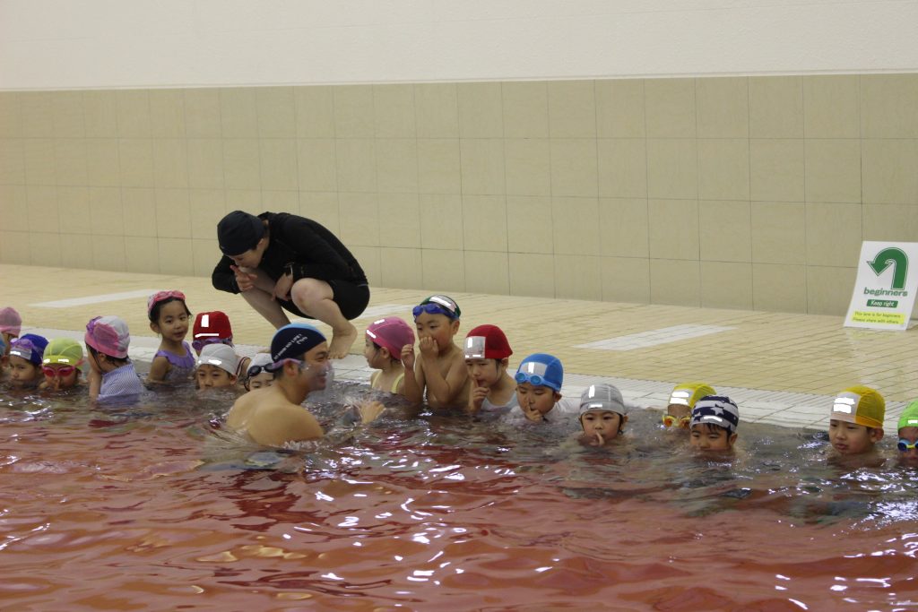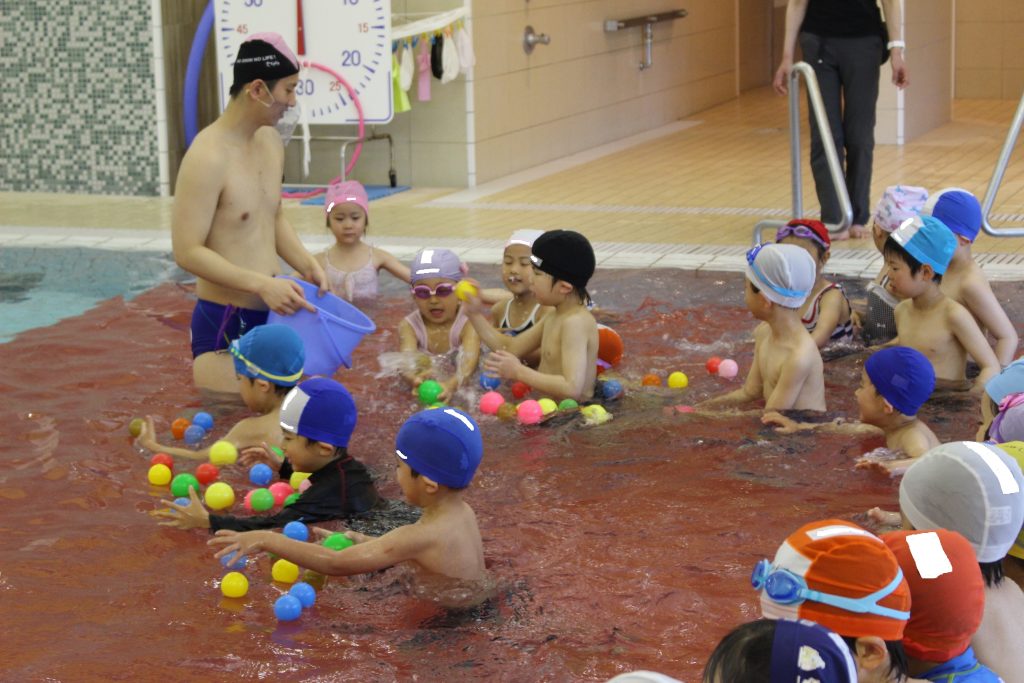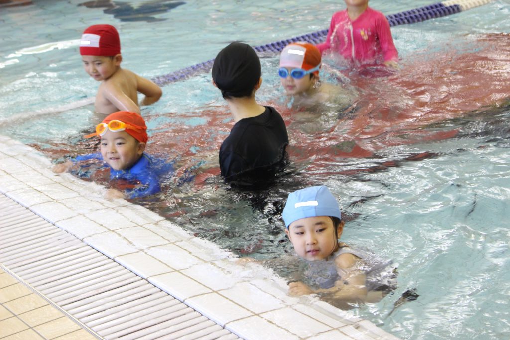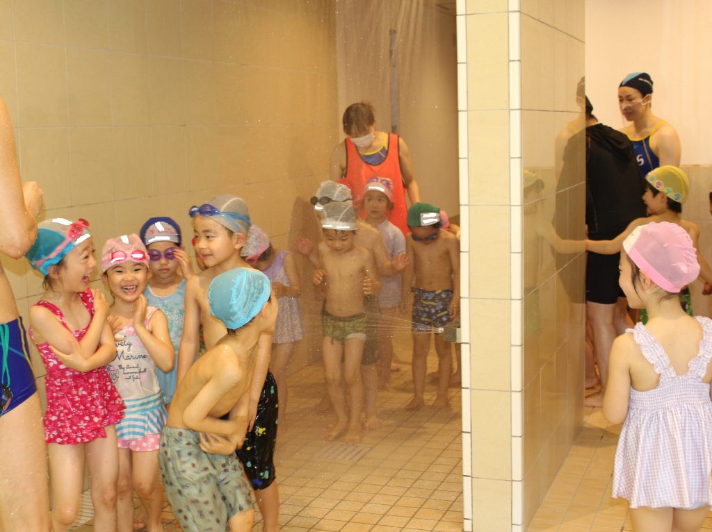二子玉川ライズにあるアトリオドゥーエのプールをお借りして、今年度も年長組の水泳指導が始まりました。水泳指導の目的は、『水慣れを中心に楽しく、水中での活動に親しみながら小学校就学前に泳法習得に必要な基礎作りを目指す』です。