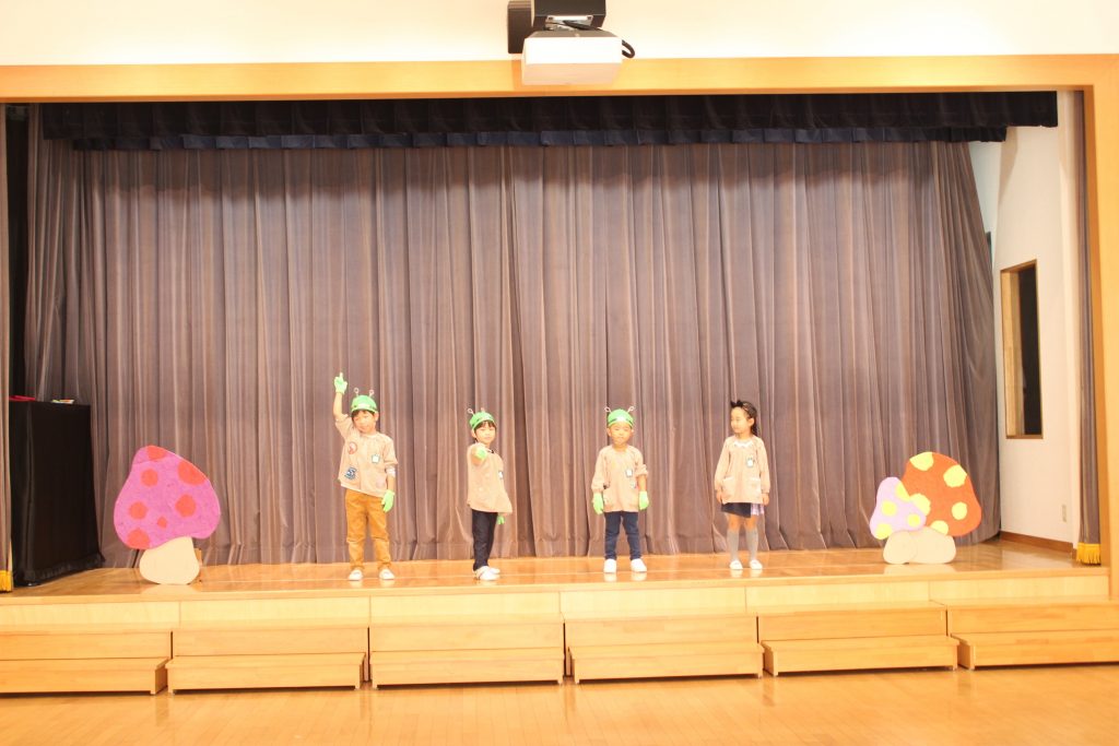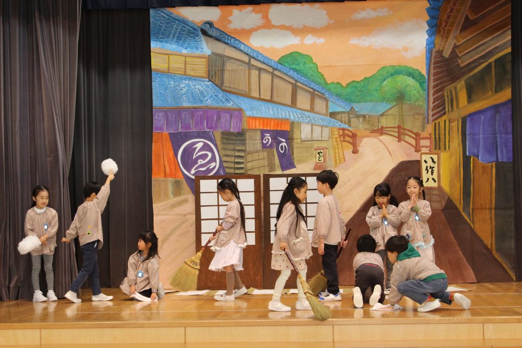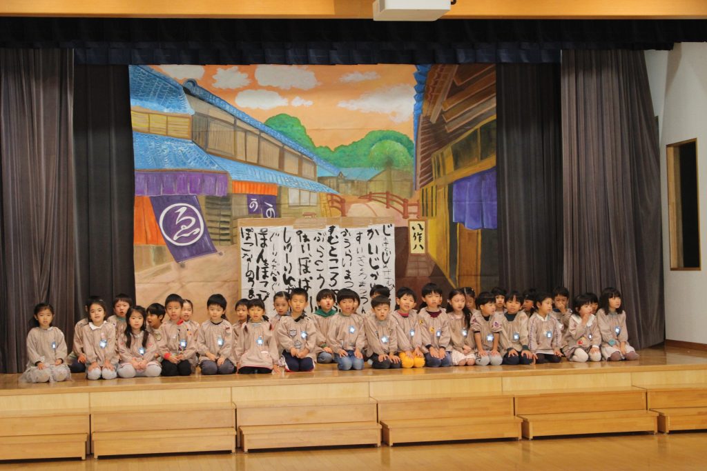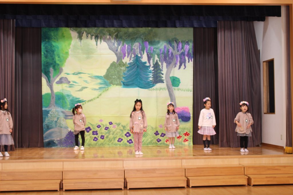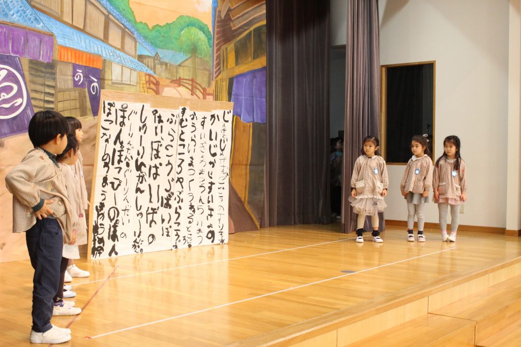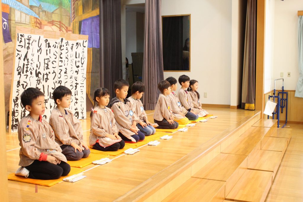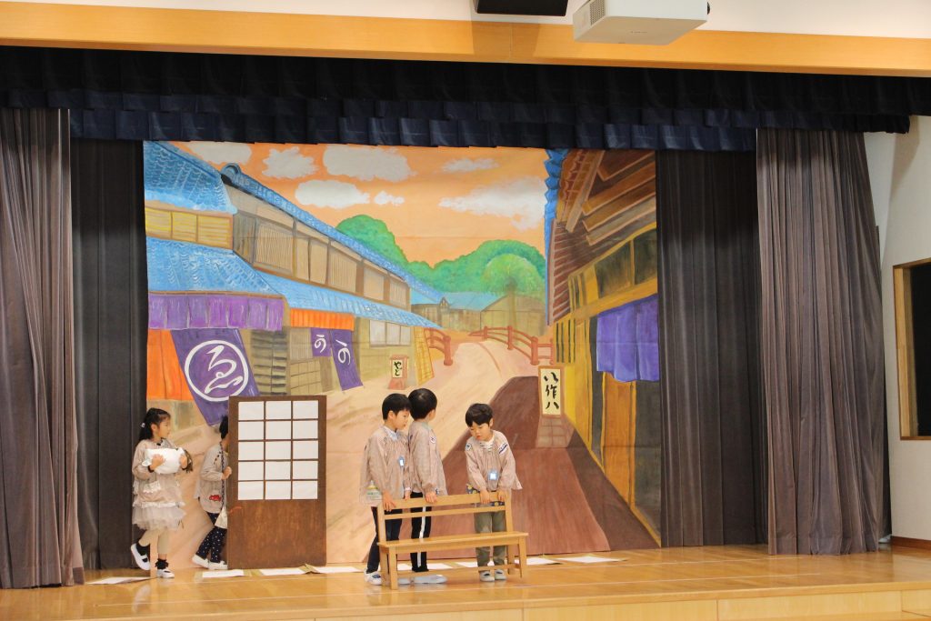 このような子ども達の育ちが見られてきたタイミングで、本園の三大行事の一つである『子どもの発表会』に向けた活動がはじまることになりました。年少組は遊戯、年中組は舞踊劇、年長組は言語劇を発表します。約一ヶ月半をかけて題材や役決め、表現活動に取り組みました。いよいよ当日を迎えますが、この日の年長組の活動を一部お伝えします。