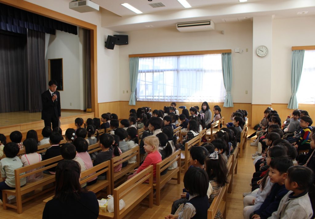 一年の締めくくり、まとめの時期となる3学期がスタートしました。今年度は残り50日弱となりました。始業式では、園長先生から『はあと』の話がありました。これからの園生活の中で、大切にしてほしいことをたくさんお話してくださいました。真剣な表情で、集中して話を聞く様子が見られていました。新年が明け、新学期の始まりでもあるということで、この節目を新たな気持ちで、これからを楽しみに意欲や期待感をもって過ごしていってほしいと思います。