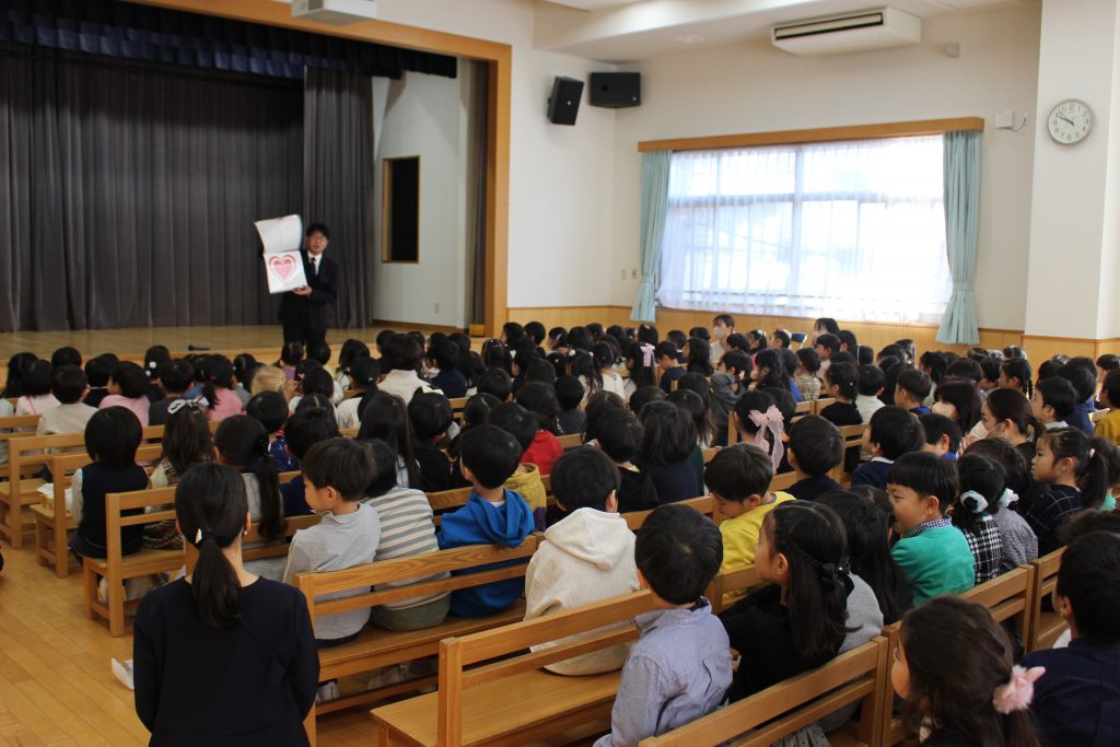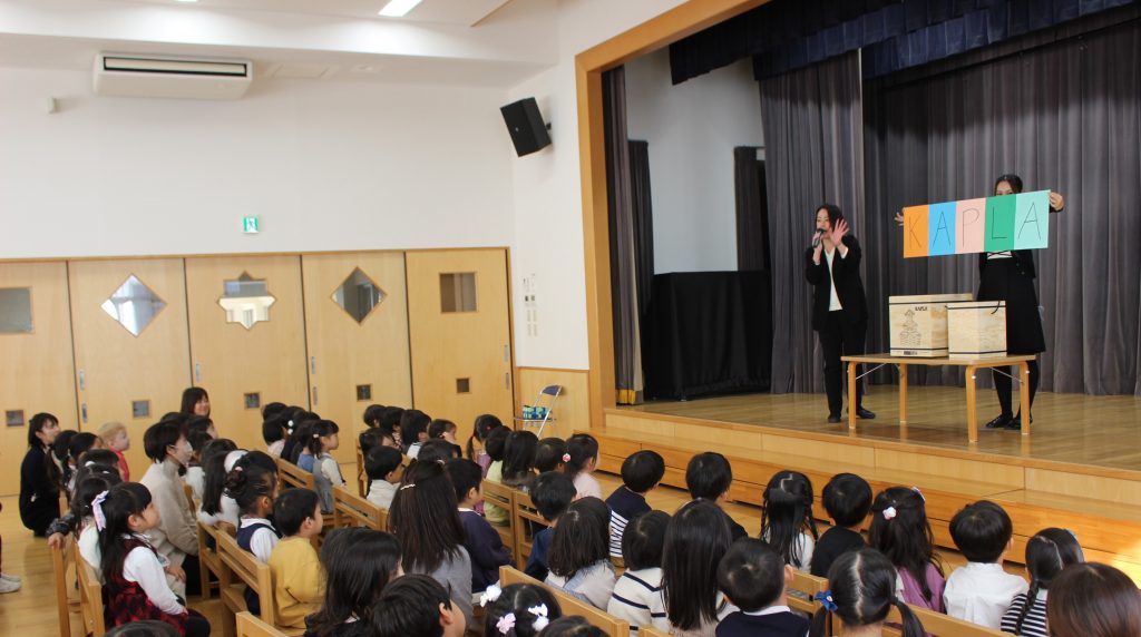 最後に、一足早く卒園記念品として、KAPLAを年長組の保護者からいただきましたので、子ども達に紹介する時間を設けました。卒園する年長組から先にお部屋に置いてあそんでいきます。年中・年少組にも回していくので待っていてくださいね。謝恩係の皆様をはじめ年長組の保護者の皆様に、心より感謝申し上げます。