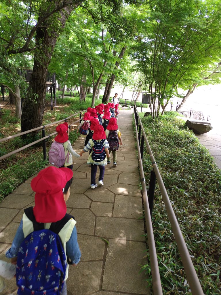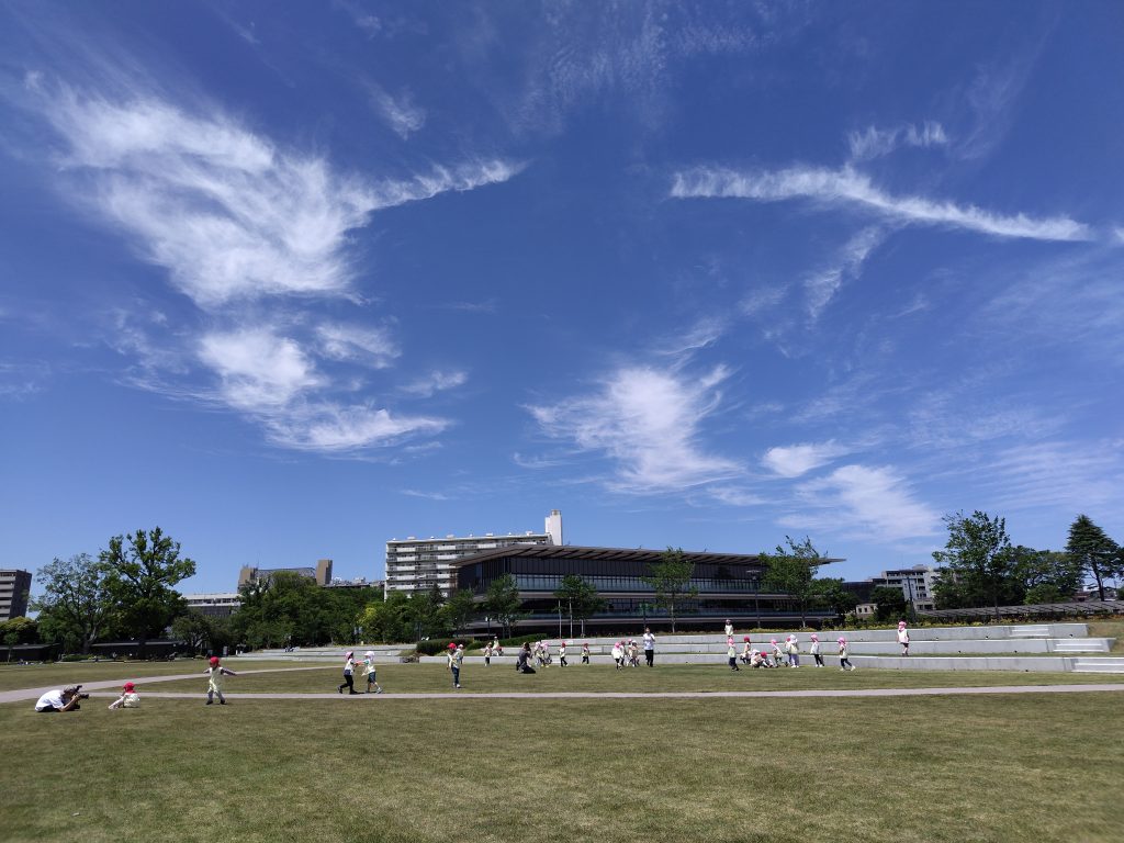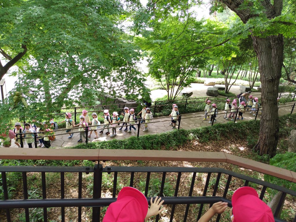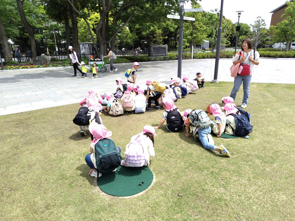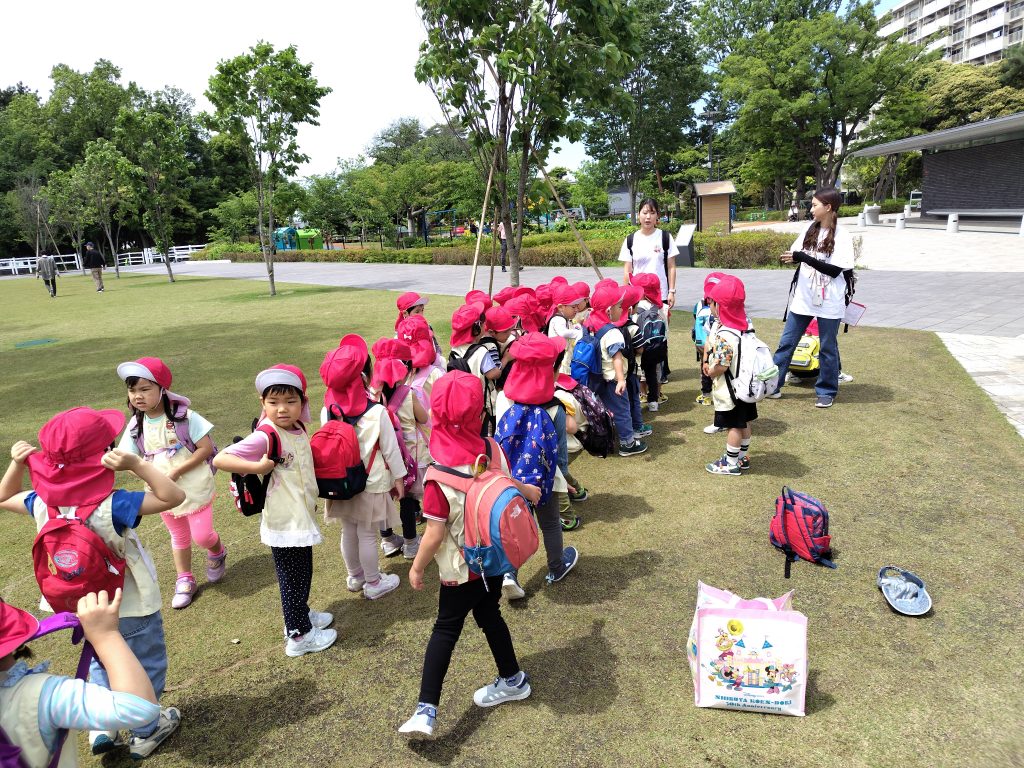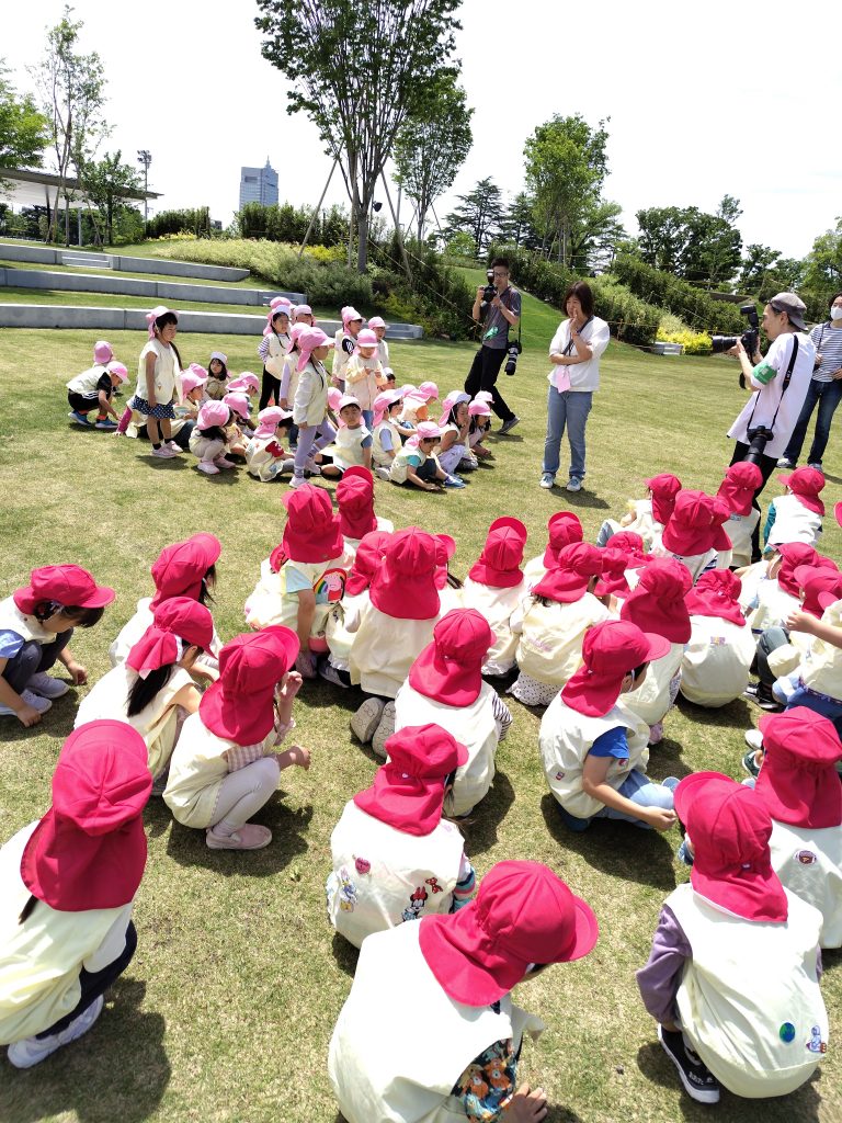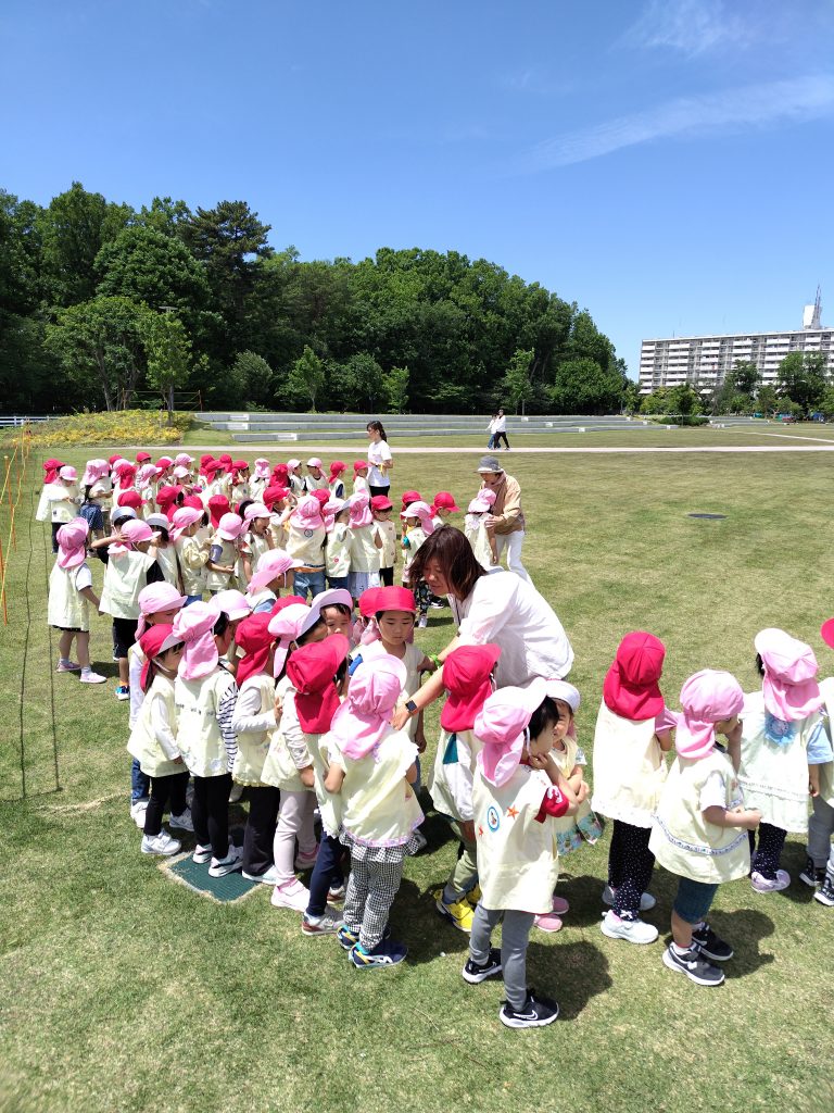 原っぱ広場では、年少時代の3つのクラスに分かれてリレーをしました。さながらミニ運動会です。芝生の上を思いっきり駆け回りました。自然の中で元気いっぱいにあそぶ子どもたち。多くの緑と広い、広い広場。お弁当を広げて、笑顔いっぱいで、遠足を満喫しました。お友だちとの関係が深まり、自然を五感で感じ、公共の場での過ごし方を知るよい機会となりました。