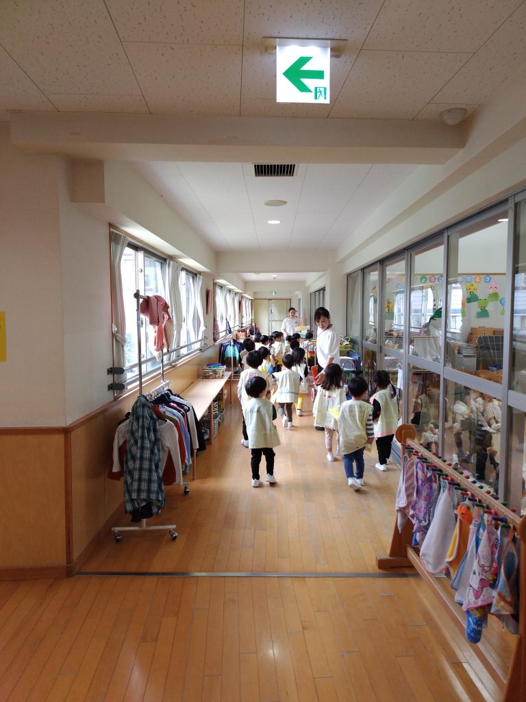 プレゼントが見えないように隠して 年長さんのお部屋に向かいます