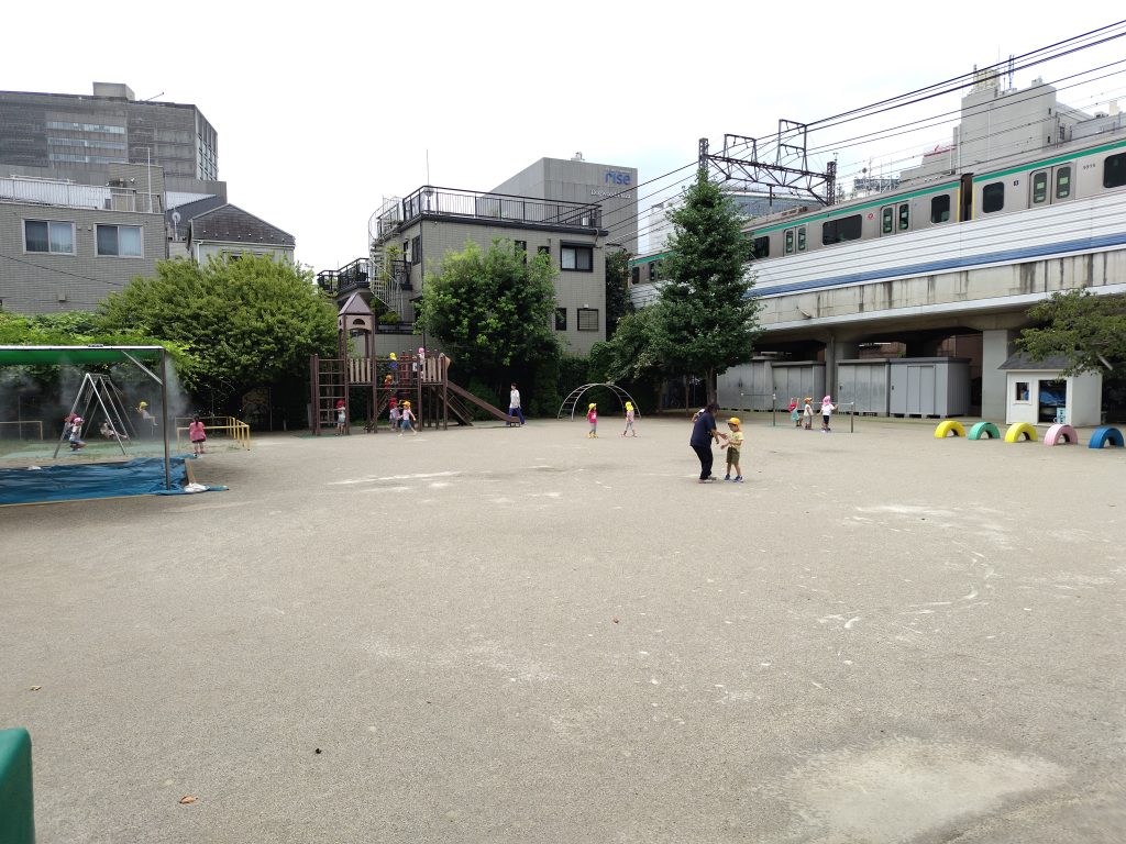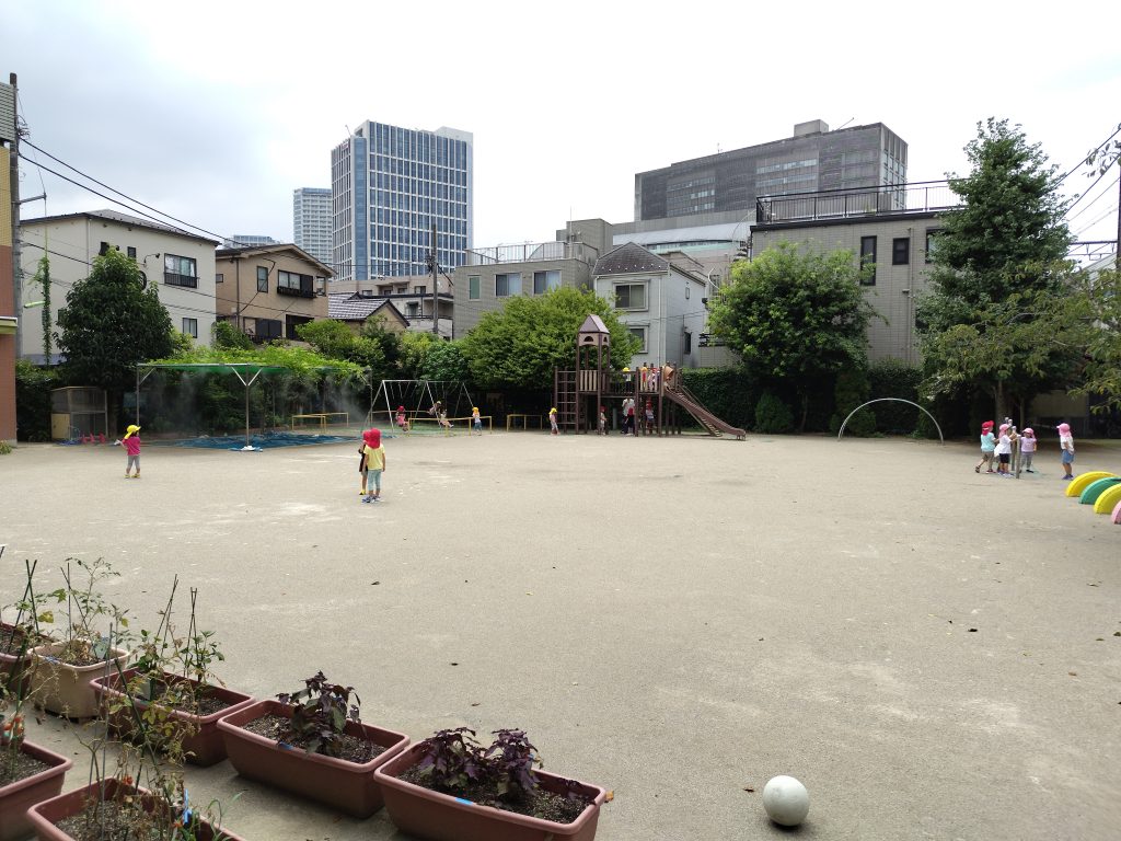 気温が和らいだ一瞬をとらえて、園庭で10分弱あそびました。ひさびさの園庭です。夏真っ盛りですが、子どもたちはパワフル。ボールあそび、ブランコ、鉄棒…。短い時間でしたが園庭あそびを満喫しました。