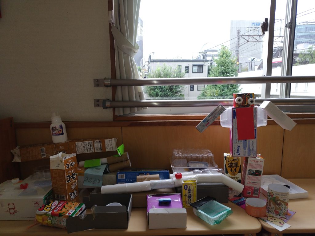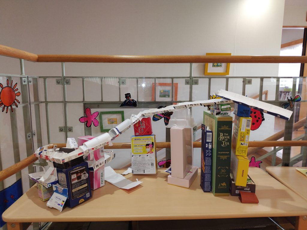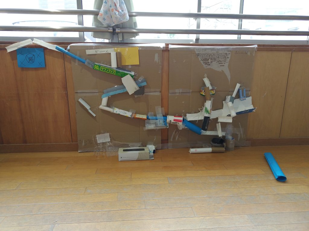 想像の数だけ作品が生まれます。大人が本気で子どもたちの目線まで降りても、その魅力に近づけない作品があります。子どもたちのクリエイティブな土壌が奥深く、豊かなものだからでしょう。自由にのびのびと、あそびながら世界を広げていく機会をたくさん設けていきたいと思います。廃材は、子どもたちにとって“宝物”。子どもたちの想像を応援したいと思います。