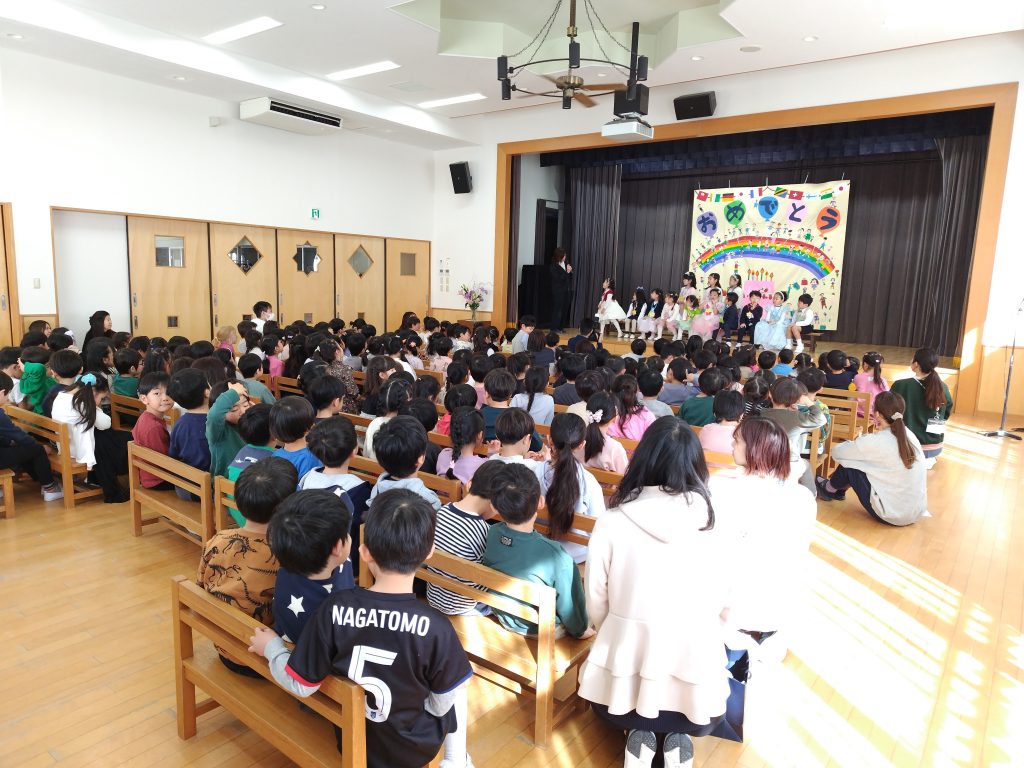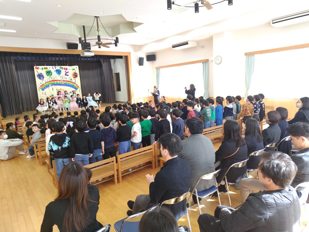 誕生会では、2月生まれのお友だちに、みんなで「おめでとう」とお祝いの言葉を伝えました。ステージの上から「ありがとうございます」と、お礼の言葉が聞こえてきました。心のこもった言葉のやり取りでした。すべての子どもたちの健やかな成長を心から願います。