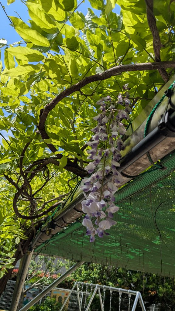 五月晴れのスタート! 2025 5/01 2025.05.01 5月がスタートしました。五月晴れのもと、朝から子どもたちはタケノコ体操で元気いっぱい!手作り鯉のぼりもみんなの体操を見ています。園庭も眩しいくらい緑が鮮やかになってきましたね。梅の実も大きくなってきました。砂場の上の藤棚も綺麗な花をつけました。 もうすぐ連休に入ります。みんな元気に楽しんでくださいね。 5月も元気にタケノコ体操だ! 手作り鯉のぼりも気持ちよさそう 梅の実が沢山つきました 綺麗な藤の花が咲きました 4月30日 4月の誕生会 ~〇〇や〇〇な人が多い~ 5月7日 全体タケノコのスタート!