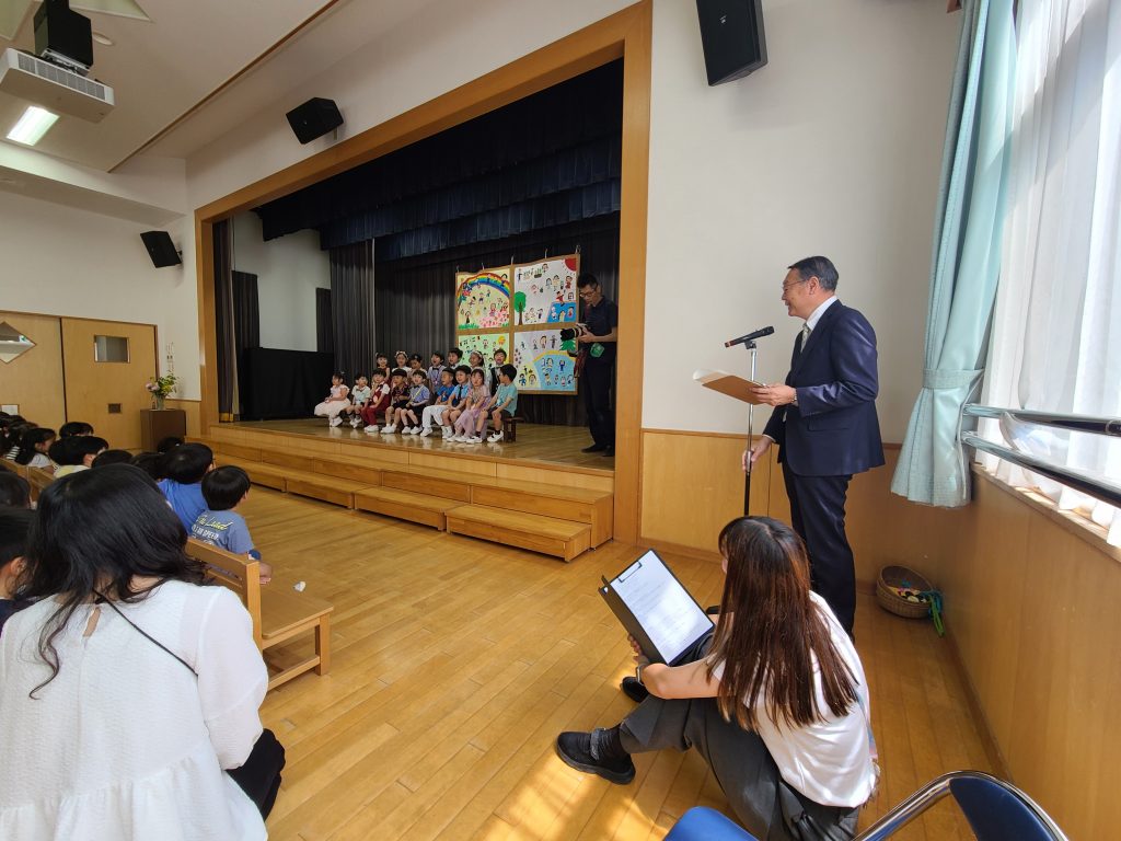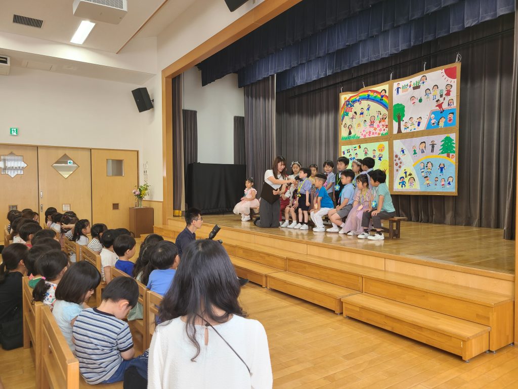 5月は『皐月』と呼ばれていますが、昔の日本では田植えをする月であったことから『早苗月(さなえつき)』と言っていたのが短くなって『皐月(さつき)』になったとのお話が園長先生からありました。そして、恒例になってきた「5月生まれの人はどんな人が多いのか。」の質問があり、