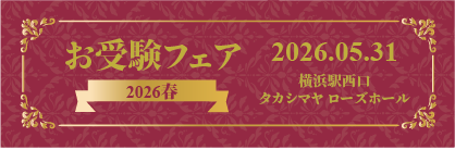 お受験フェア2026春 参加について 2026 4/06 2026.04.06 理英会と横浜髙島屋のコラボレーション企画「お受験フェア2026春」に本園が参加します。当日は、「【理英会】私立小学校・幼稚園個別相談会」にて、本園職員が個別にお話させていただきますので、是非ご参加ください。 日時:2026年5月31日(日)10:00~16:00 個別相談会 ①:10:00~13:00 ②:13:00~16:00 会場:横浜駅西口 タカシマヤ ローズホール ※横浜髙島屋内ではございません。 「私立小学校・幼稚園個別相談会」への参加は予約制となります。下記画像からアクセスできます。 ※詳細は、サイトをご覧ください。 園児募集イベント(4月) 詳細のご案内
